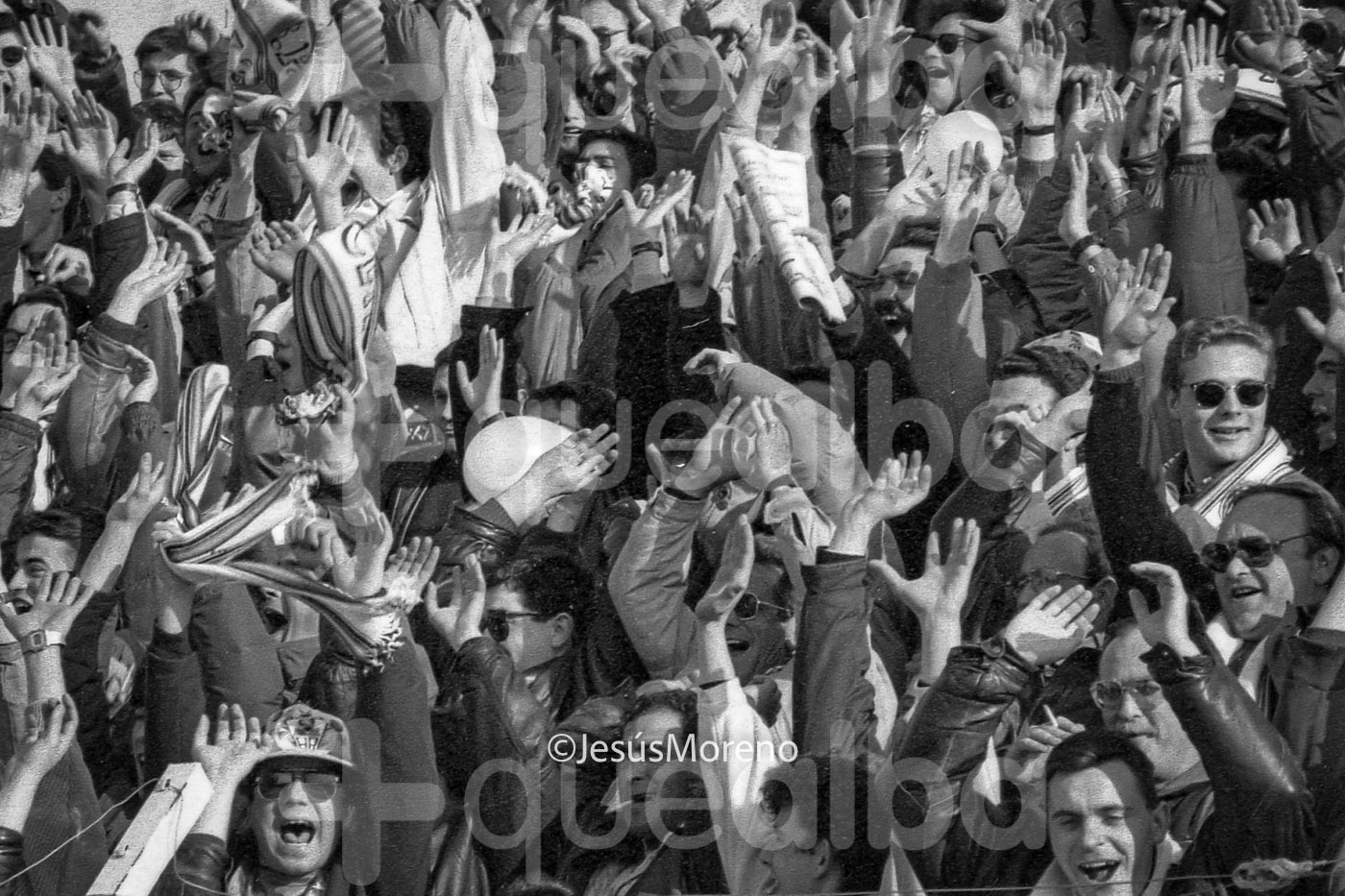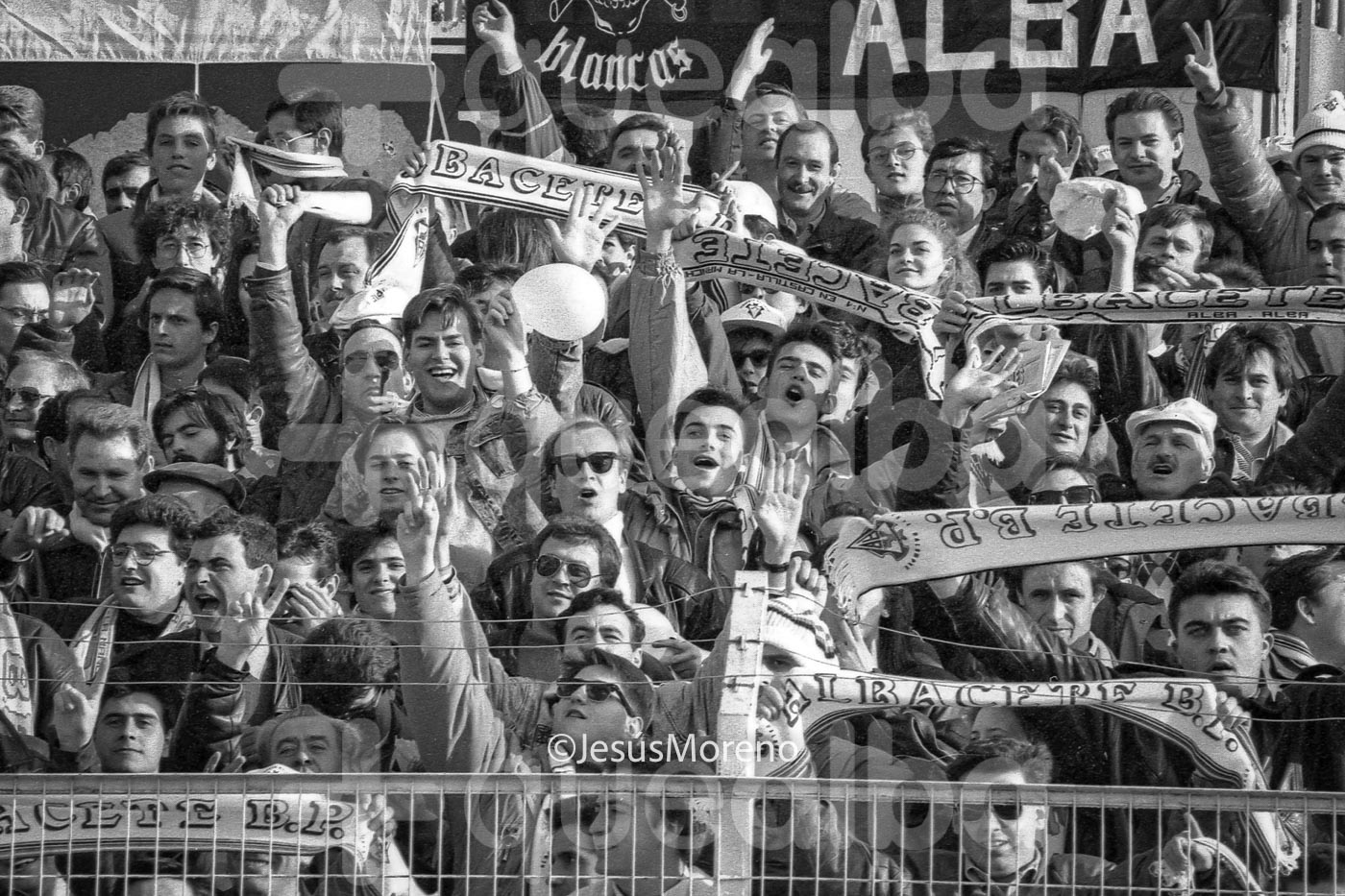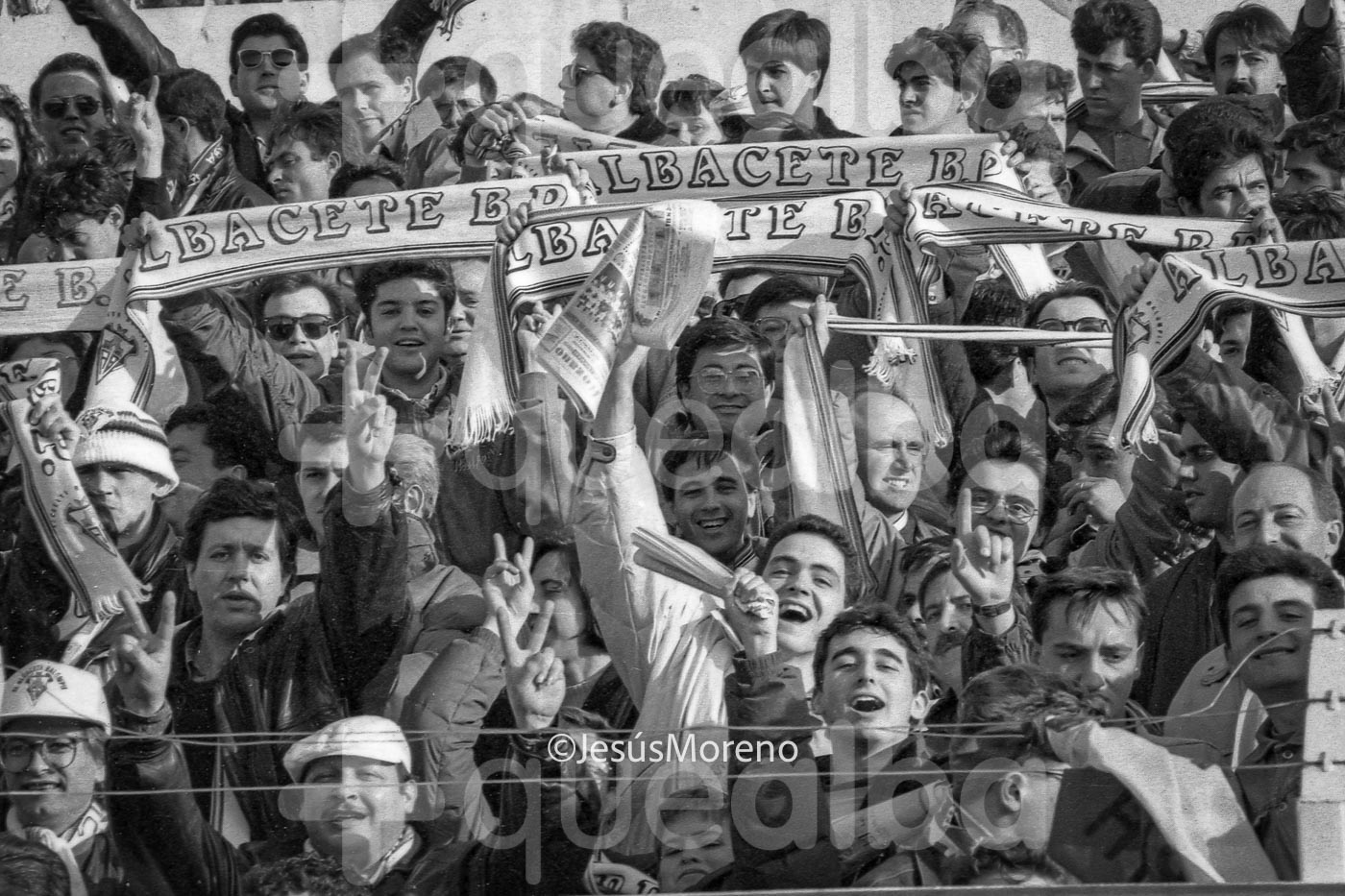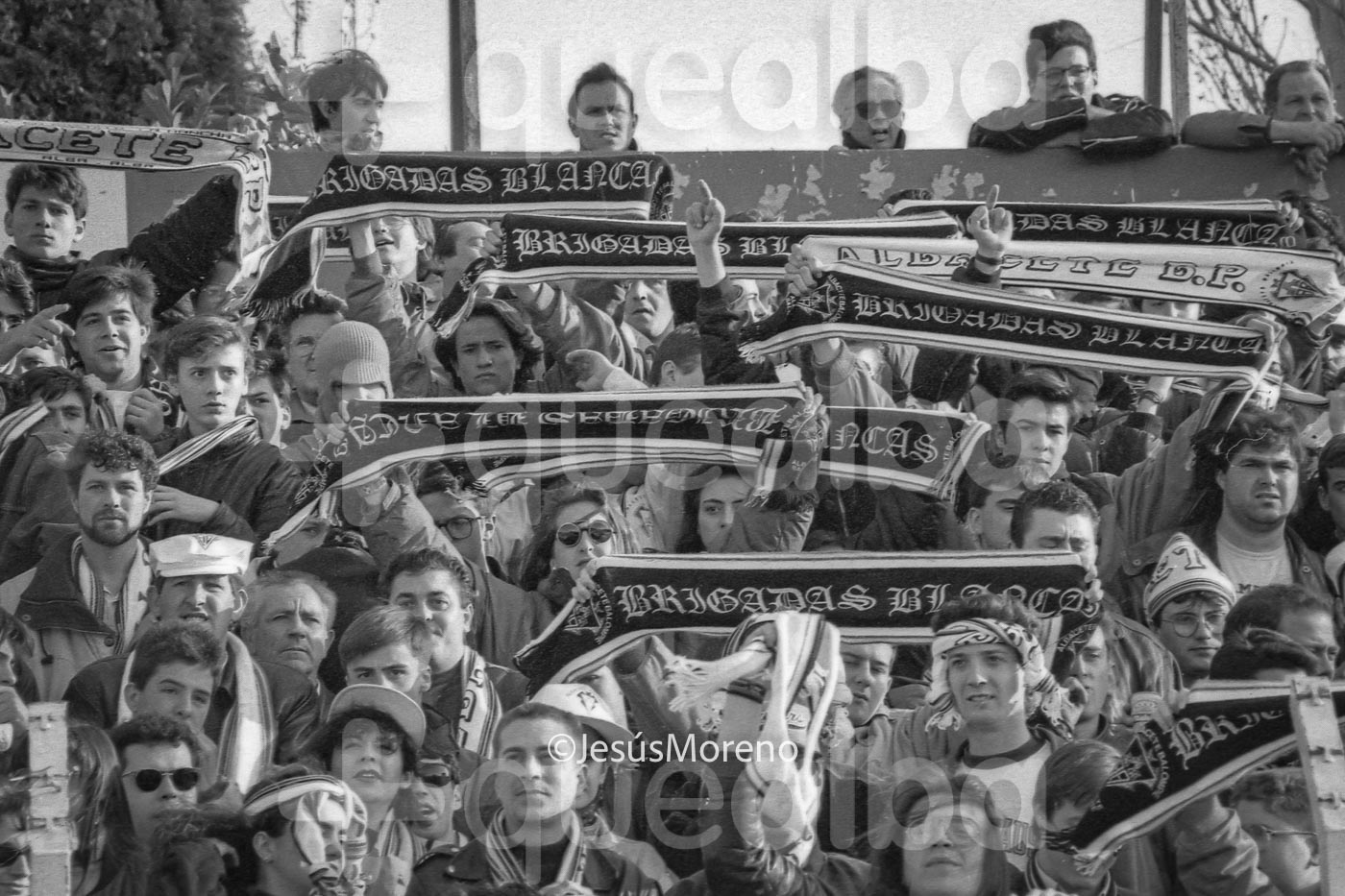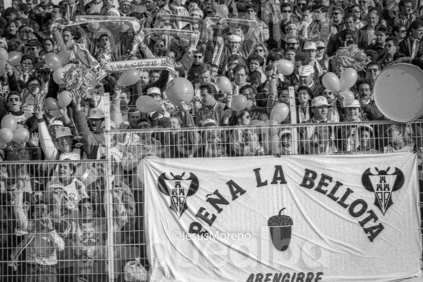 En las horas previas al partido entre los dos equipos blancos, también se habló mucho de dinero. “Los no socios pagarán entre 4.000 y 18.000 pesetas por ver el Albacete-Madrid”, publicaba La Tribuna. Periódico en el que difundió Jesús Moreno sus magníficas fotografías del encuentro. Os compartimos algunas de estas imágenes. Instantáneas que reflejan la pasión futbolera que despertaban jugadores como Conejo, Coco, Zalazar, Catali, Antonio, Buyo, Hagi, Míchel o Butragueño.