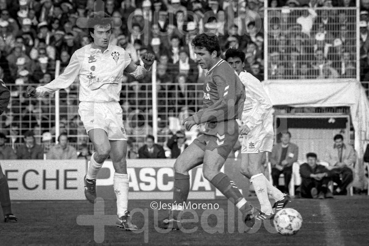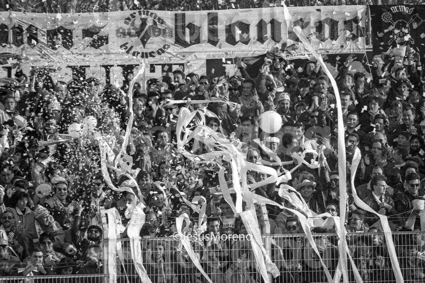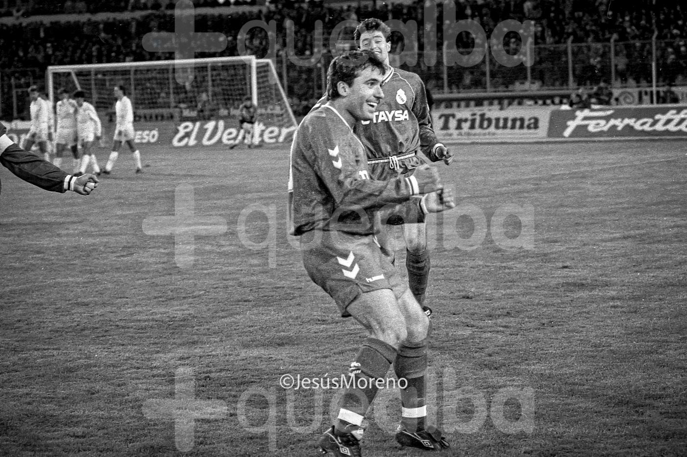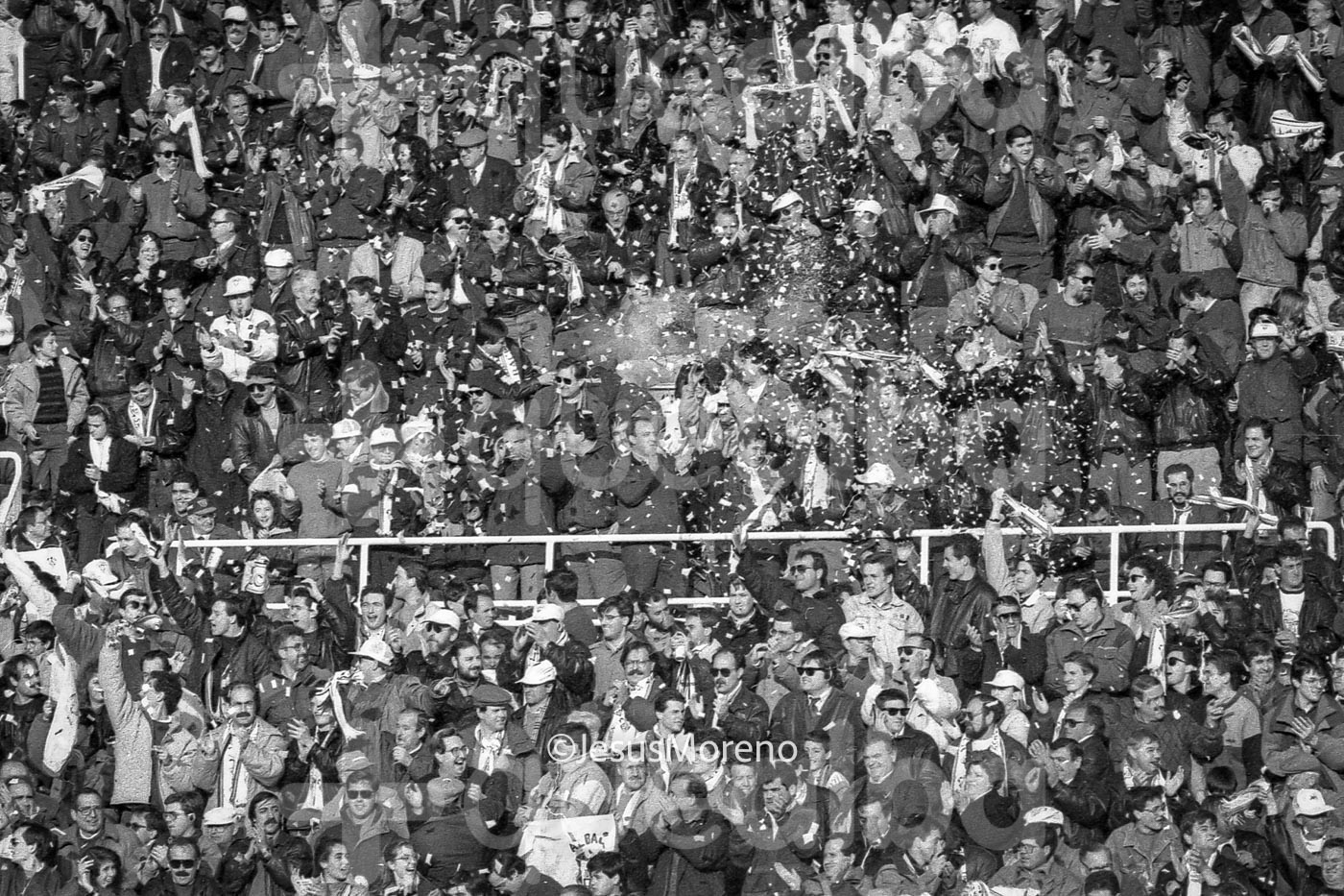 En las horas previas al partido entre los dos equipos blancos, también se habló mucho de dinero. “Los no socios pagarán entre 4.000 y 18.000 pesetas por ver el Albacete-Madrid”, publicaba La Tribuna. Periódico en el que difundió Jesús Moreno sus magníficas fotografías del encuentro. Os compartimos algunas de estas imágenes. Instantáneas que reflejan la pasión futbolera que despertaban jugadores como Conejo, Coco, Zalazar, Catali, Antonio, Buyo, Hagi, Míchel o Butragueño.