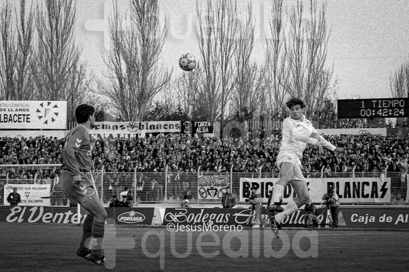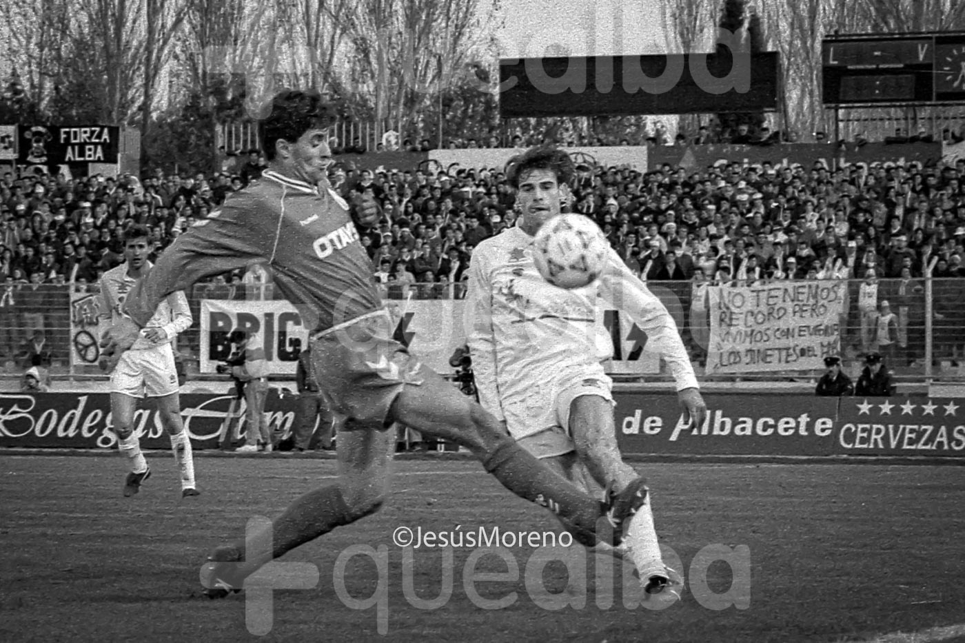 El partido se disputó el 28 de marzo de 1992. El Alba había ascendido a la máxima categoría. El calendario determinó esa fecha para el partido de la Liga. Tal como está ocurriendo durante estos días, la expectación fue máxima. El periodista Adolfo Giménez escribía: “La ciudad quedará paralizada un par de horas”. Posiblemente, todo Albacete lo hizo e imaginamos que buena parte de la capital de España también quedó inmovilizada y es que el encuentro fue retransmitido por Telemadrid tras el acuerdo alcanzado entre el conjunto manchego y la televisión regional. Según algunas informaciones de entonces, el Albacete tuvo que abonar 3,5 millones de pesetas al Rayo Vallecano en compensación del perjuicio por esa retransmisión.