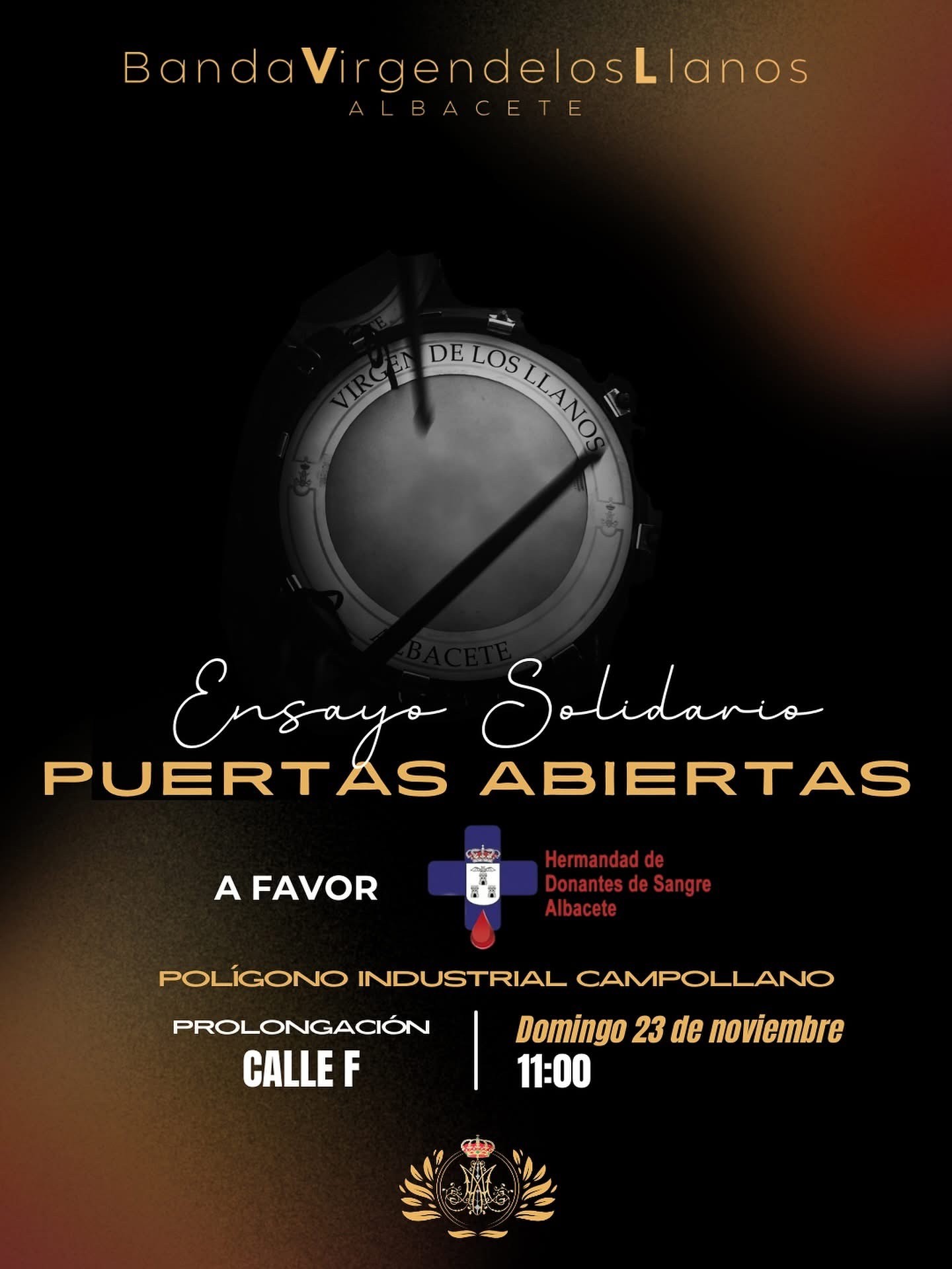La Banda de Cornetas y Tambores Virgen de los Llanos de Albacete organiza un ensayo solidario, a beneficio de la Hermandad de Donantes de Sangre.