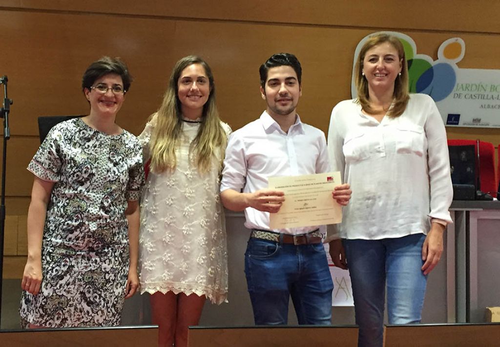 Afianzar el aprendizaje para preparar y utilizar las diferentes plantas medicinales, así como fomentar el espíritu emprendedor entre los estudiantes, es la idea que ha impulsado a las profesoras de la Universidad de Castilla-La Mancha (UCLM) Lourdes Gómez y Ángela Rubio a que los alumnos de la asignatura de Fitoterapia de la Facultad de Farmacia participen en la segunda edición del concurso convocado por el Instituto Botánico y financiado por la empresa italiana Aboca. Los cinco trabajos premiados han sido presentados en el en el Jardín Botánico de Castilla-La Mancha, durante un acto presidido por la vicerrectora de Transferencia e Innovación, Ángela González.
