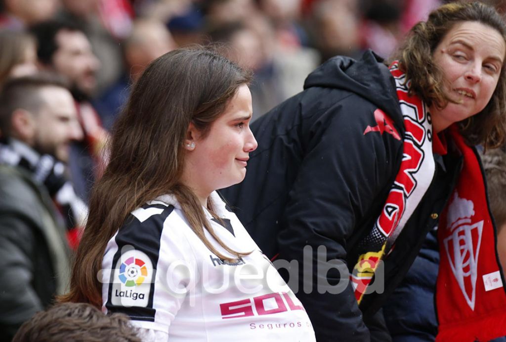 Lo cierto es que el resultado del Albacete en El Molinón es para llorar, porque otra vez perdimos al final y nos quedamos sin ningún punto. Así no resulta raro ver las lágrimas de esta joven, conocida de Susaeta y Erice y que ha ido a Gijón desde Oviedo, que no pudo reprimir el llanto al ver la derrota, otra vez en los últimos compases, de los de Enrique Martín.