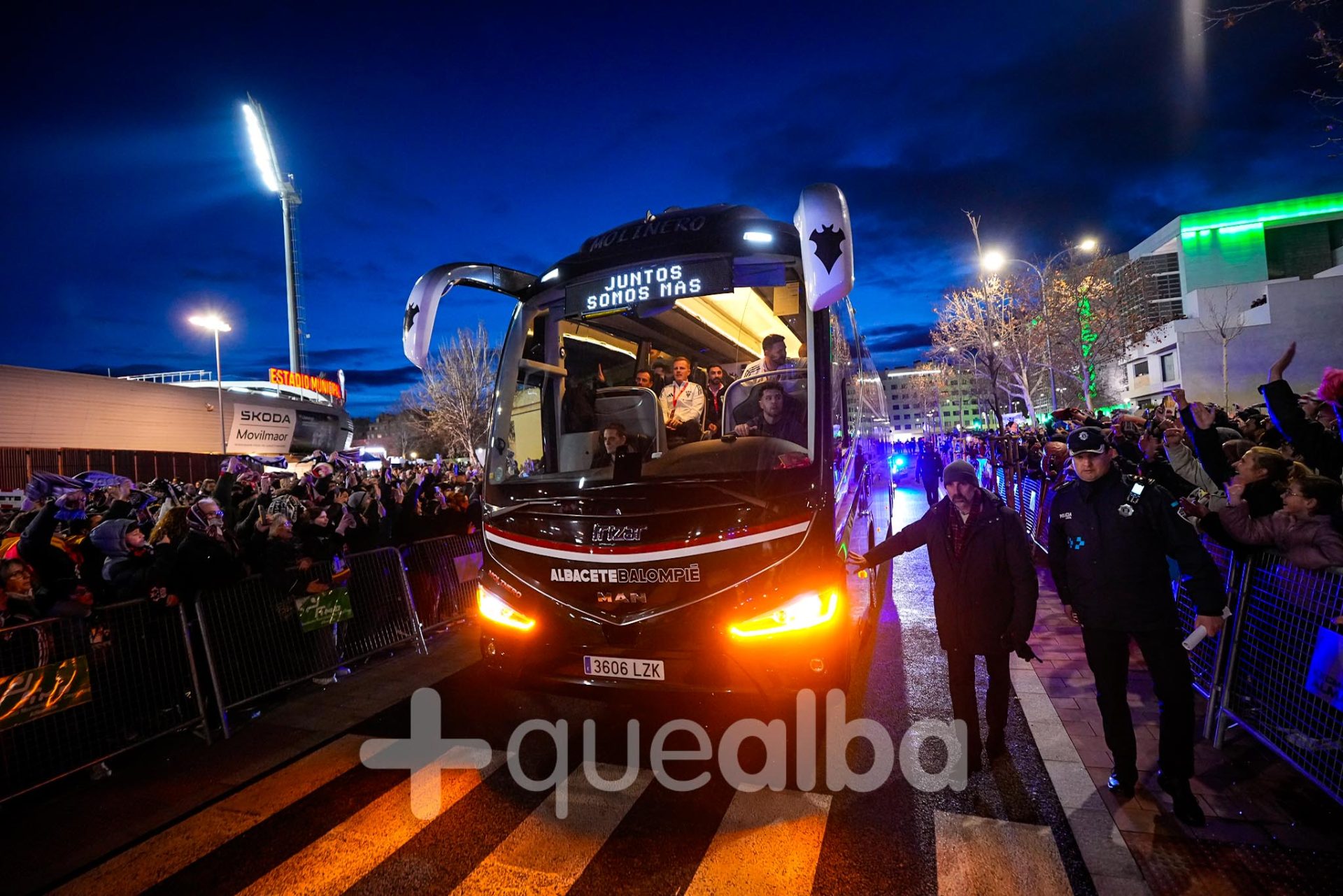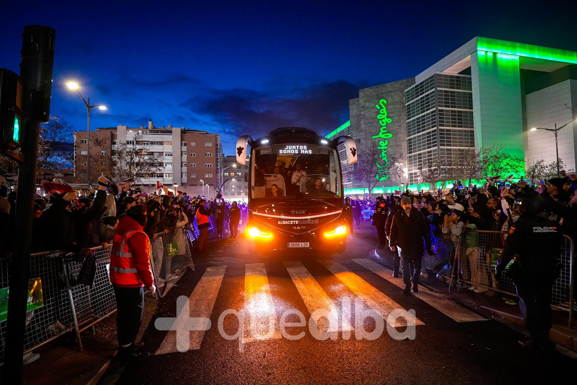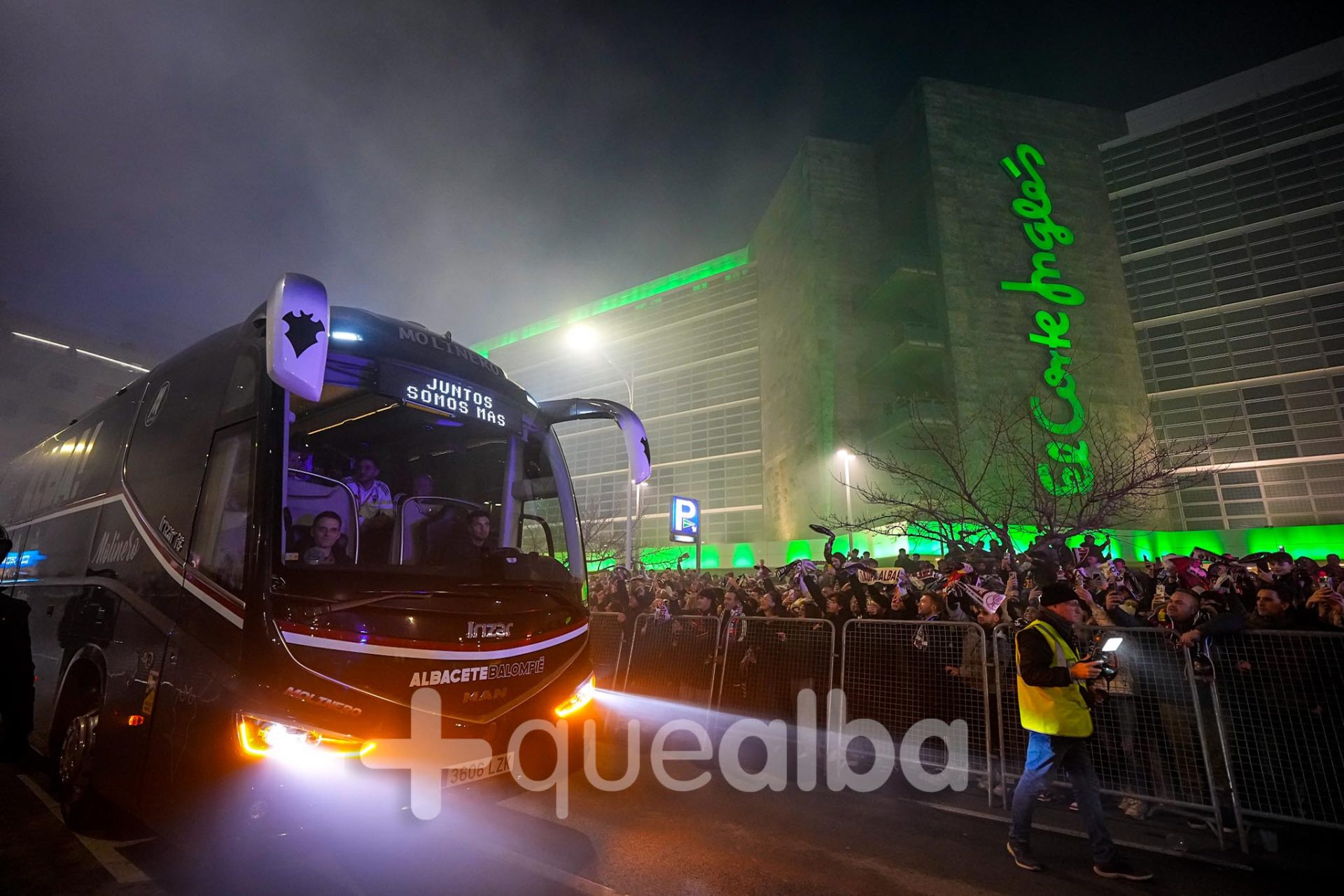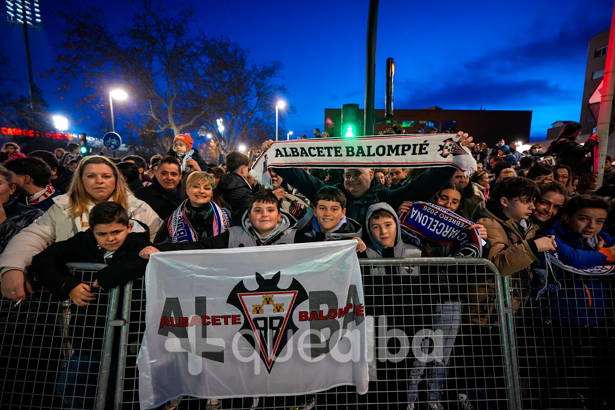 La afición del Albacete Balompié se ha vuelto a echar a la calle para recibir al equipo en su cita crucial de Copa del Rey, esta vez frente al Barcelona y después de haber eliminado al mismísimo Real Madrid.