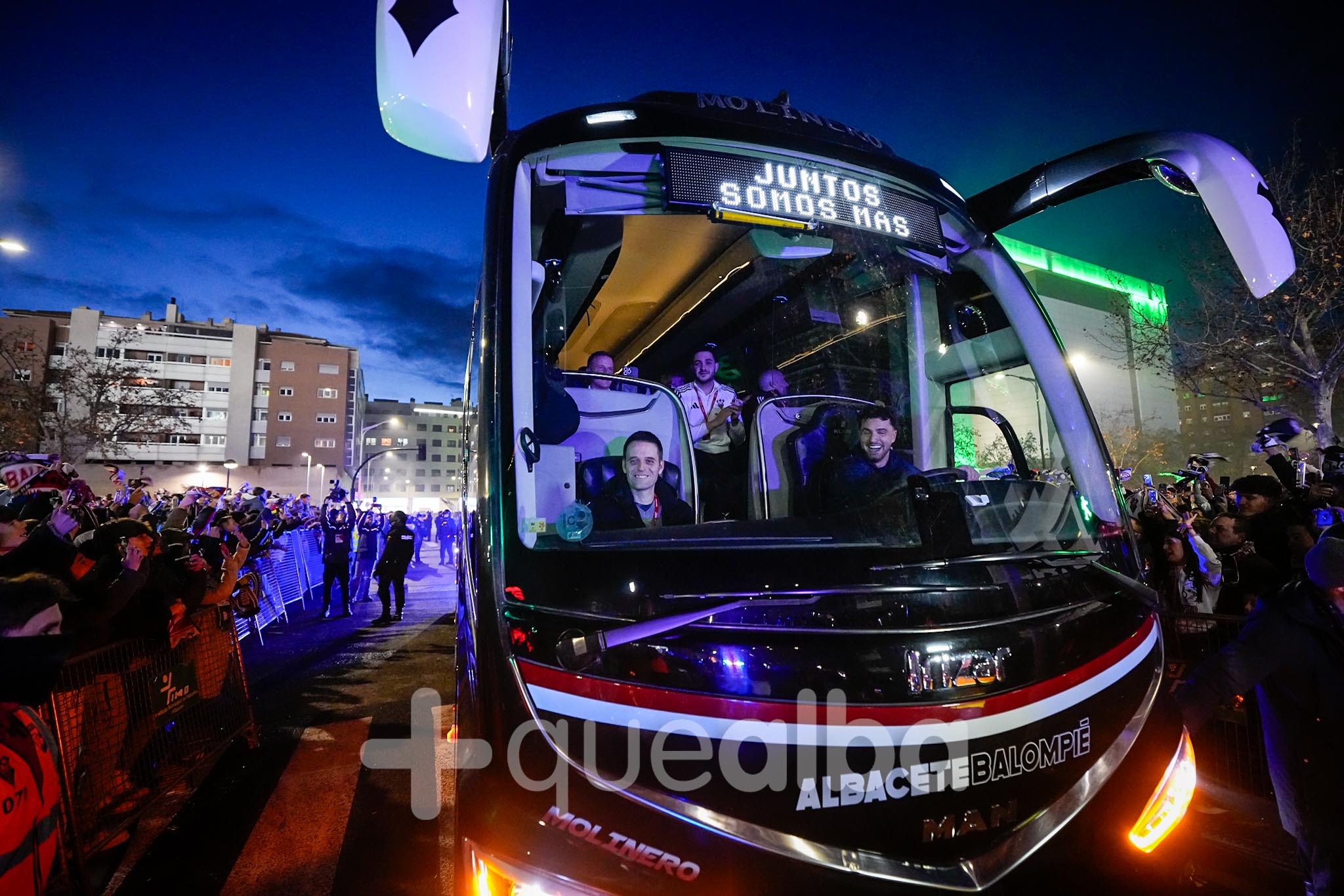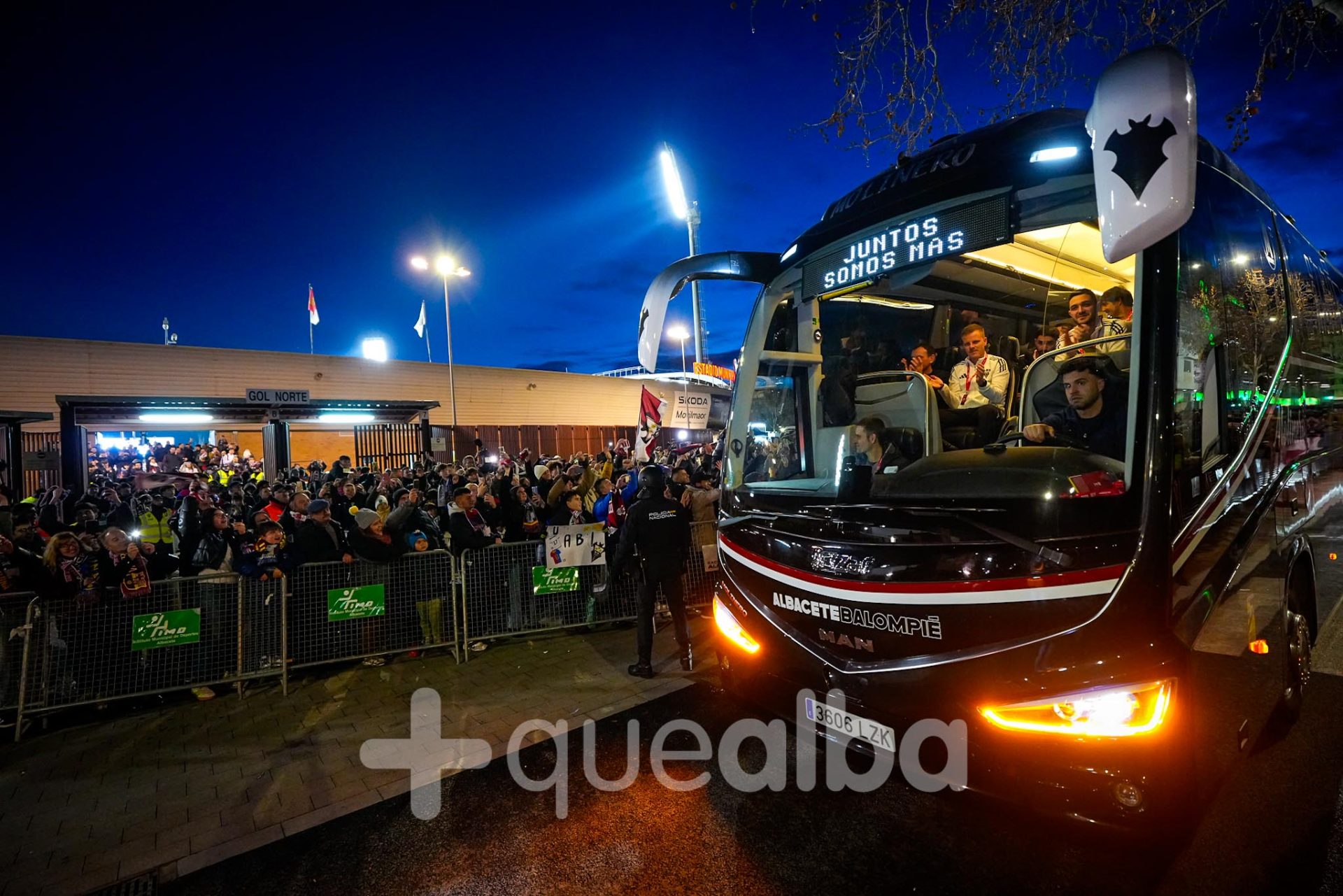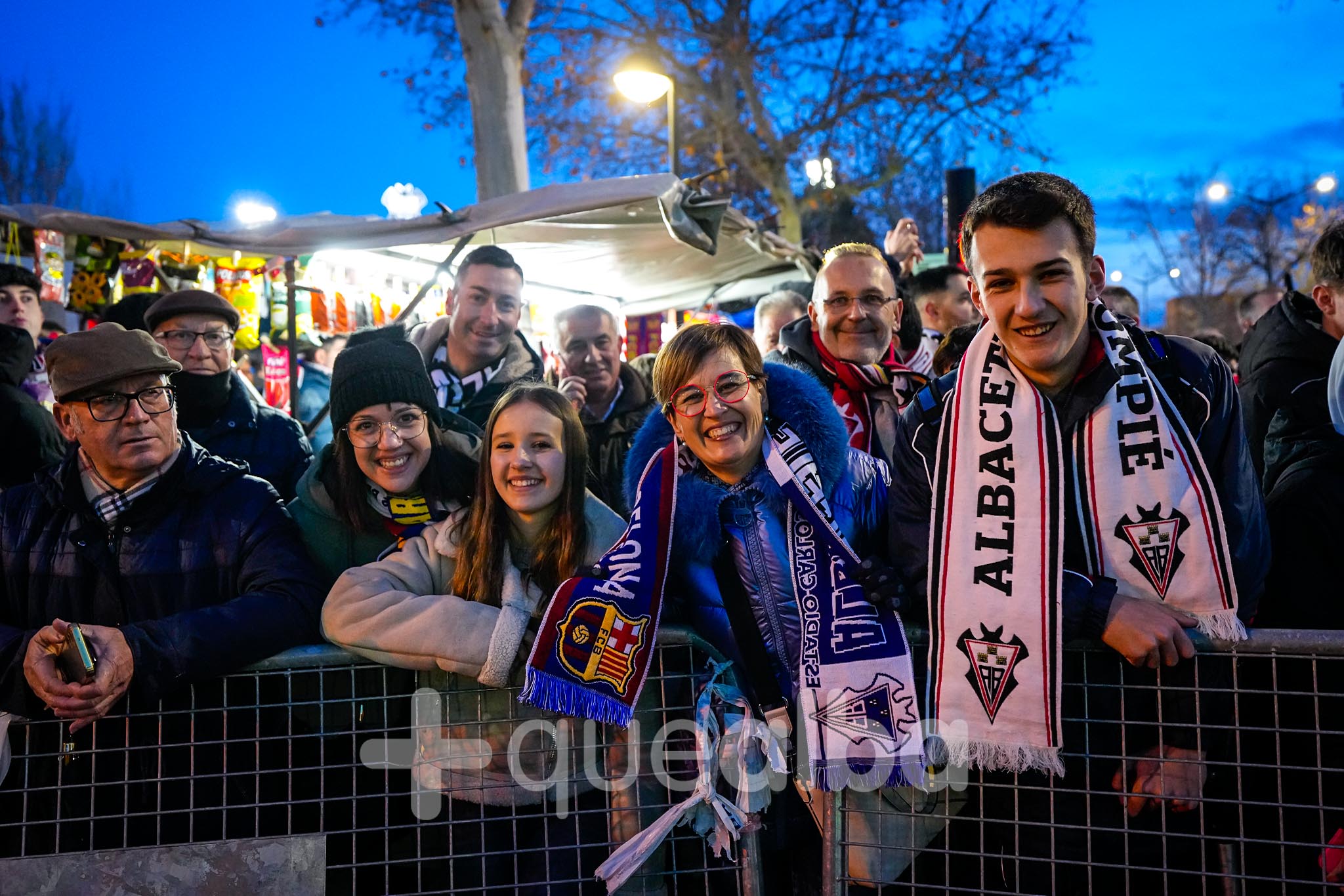 La afición del Albacete Balompié se ha vuelto a echar a la calle para recibir al equipo en su cita crucial de Copa del Rey, esta vez frente al Barcelona y después de haber eliminado al mismísimo Real Madrid.