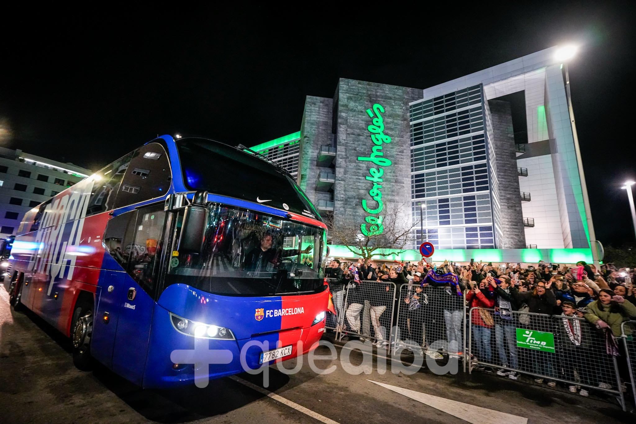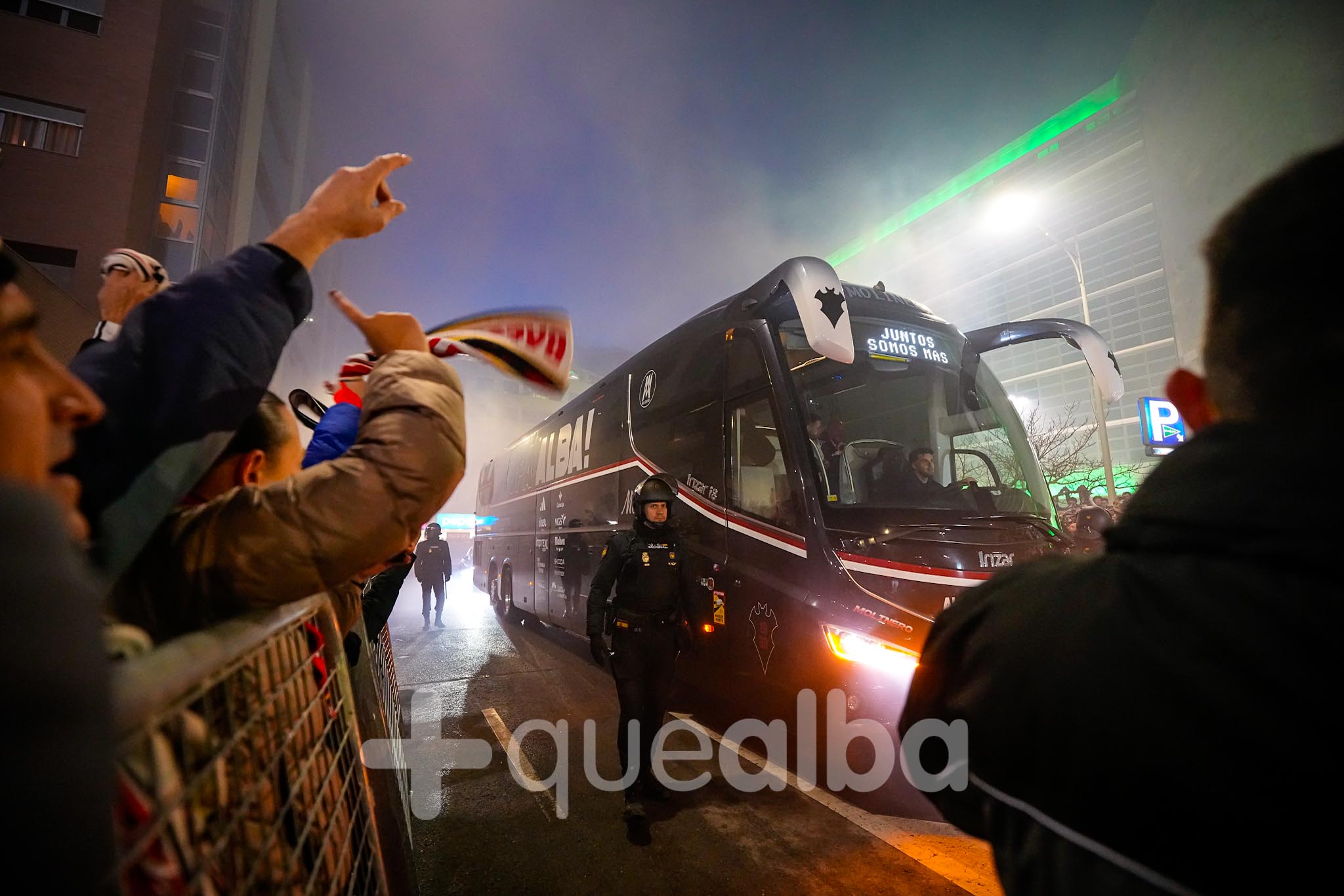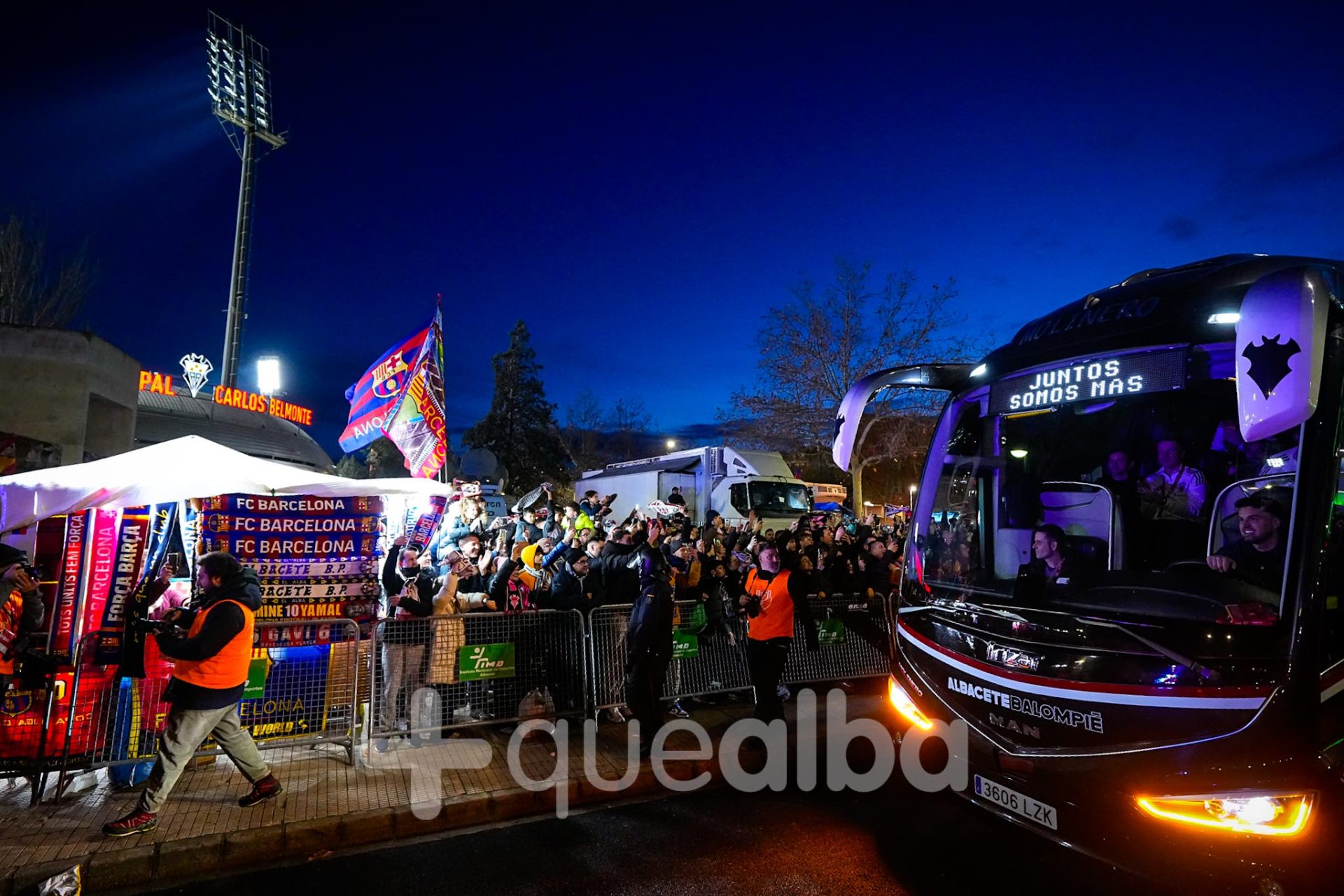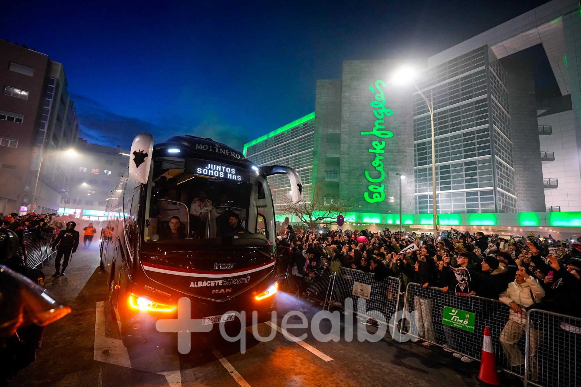 La afición del Albacete Balompié se ha vuelto a echar a la calle para recibir al equipo en su cita crucial de Copa del Rey, esta vez frente al Barcelona y después de haber eliminado al mismísimo Real Madrid.