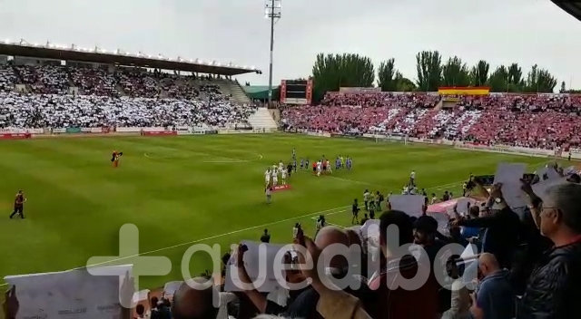 Ambientazo en el Carlos Belmonte para el partido de play off contra el Lorca. Espectacular recibimiento al Alba. Miles de voces cantando a capela el himno del Alba, el video de cuando el equipo ha salido al terreno de juego.