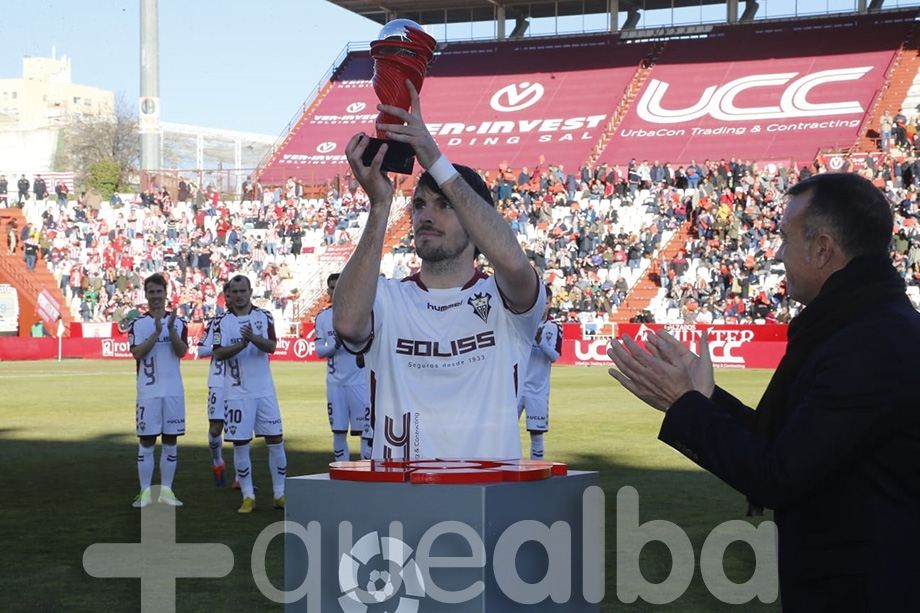 Eugeni, jugador del Albacete Balompié, fue elegido como el mejor jugador de Segunda en el mes de diciembre y esta tarde, antes del partido frente al Sporting, ha recibido su trofeo.