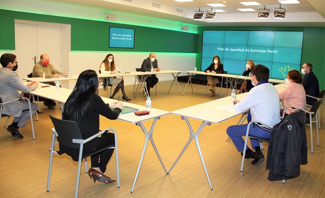 Fiel a su compromiso por continuar perseverando en la implementación de nuevas medidas para hacer aún más eficientes sus políticas de igualdad, conciliación y responsabilidad social empresarial, Eurocaja Rural ha reunido esta mañana a todos los integrantes de la Mesa Negociadora del Plan de Igualdad de la Entidad, tras el periodo de negociaciones mantenido desde el mes de noviembre hasta la fecha.