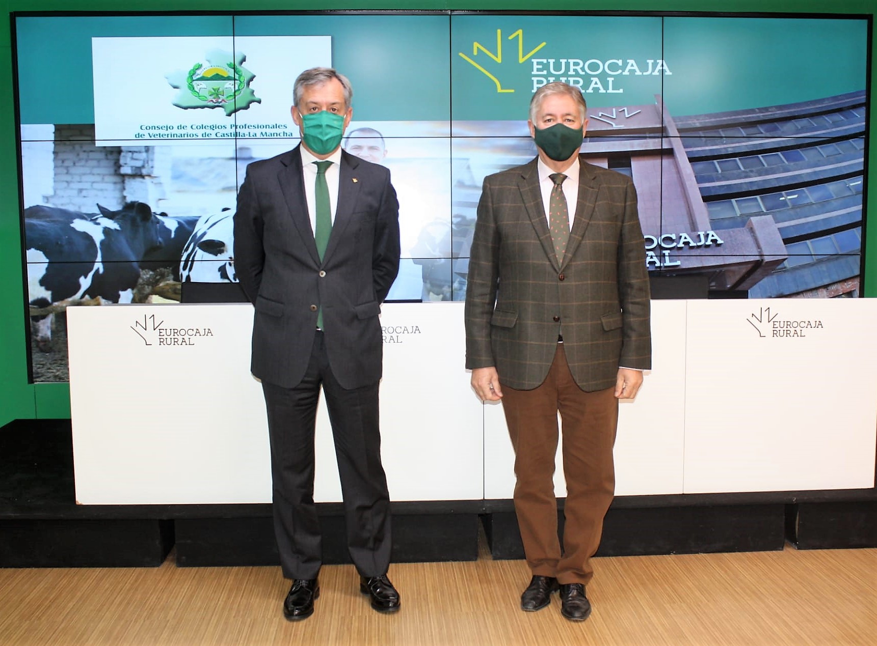 El convenio fue suscrito por el presidente de Eurocaja Rural, Javier López Martín, el presidente del Consejo de Colegios Profesionales de Veterinarios de Castilla-La Mancha, Luis Alberto García Alía, en los Servicios Centrales de la entidad financiera.