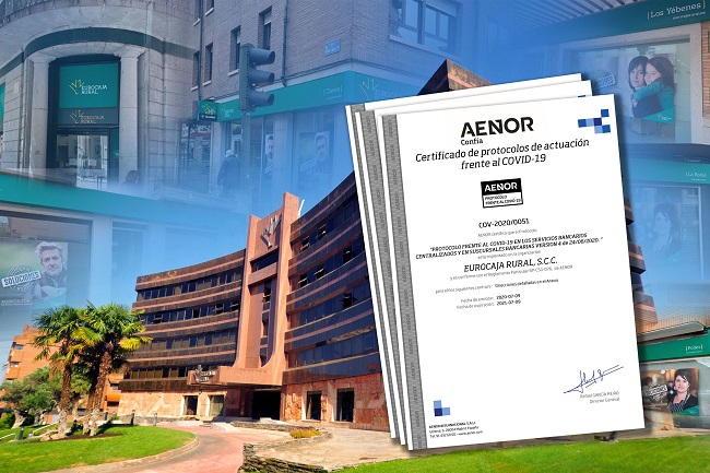 Ante la situación de pandemia causada por el nuevo coronavirus COVID-19, Eurocaja Rural estableció una respuesta en consonancia con las recomendaciones del Ministerio de Sanidad y las autoridades sanitarias, a través de su Plan de Contingencia y, posteriormente, del Protocolo de reanudación y continuidad de la actividad, impulsando una serie de medidas rigurosas para mantener la máxima seguridad en todas sus instalaciones. Por ello, decidió someterse al exigente test de calidad de AENOR, con objeto de garantizar la efectividad de las medidas implantadas en la red comercial y en sus Servicios Centrales, tras el cual, AENOR ha concedido a Eurocaja Rural el Certificado nº COV-2020/0051, como reconocimiento y evidencia de la conformidad de su sistema de gestión con la norma «Certificación de protocolos frente al COVID-19».