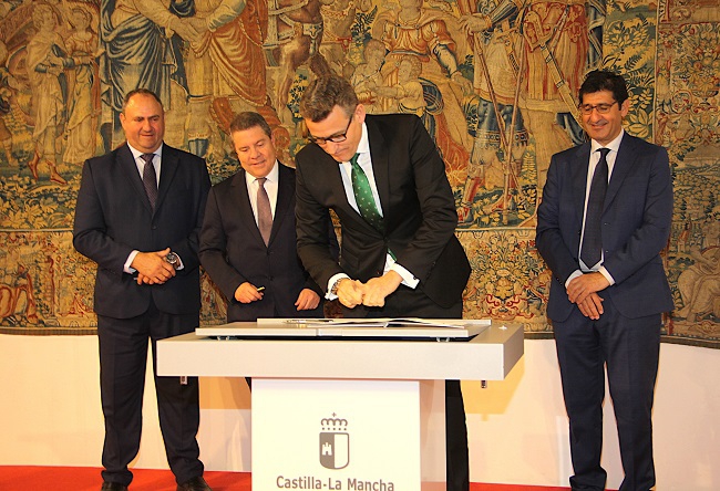 La firma de este convenio, rubricado en el Palacio de Fuensalida por el director general de la entidad financiera, Víctor Manuel Martín López, y el consejero de Agricultura, Ganadería y Desarrollo Rural de la JCCM, Julián Martínez Lizán, en presencia del presidente de Castilla-La Mancha, Emiliano García-Page Sánchez, y el vicepresidente segundo de la JCCM, José Manuel Caballero Serrano, certifica el compromiso y responsabilidad de Eurocaja Rural por atender los requerimientos del sector primario, dando respuesta a sus necesidades de financiación, ofreciendo accesibilidad al crédito y condiciones adaptadas al colectivo para incrementar su productividad y apoyar su actividad económica.
