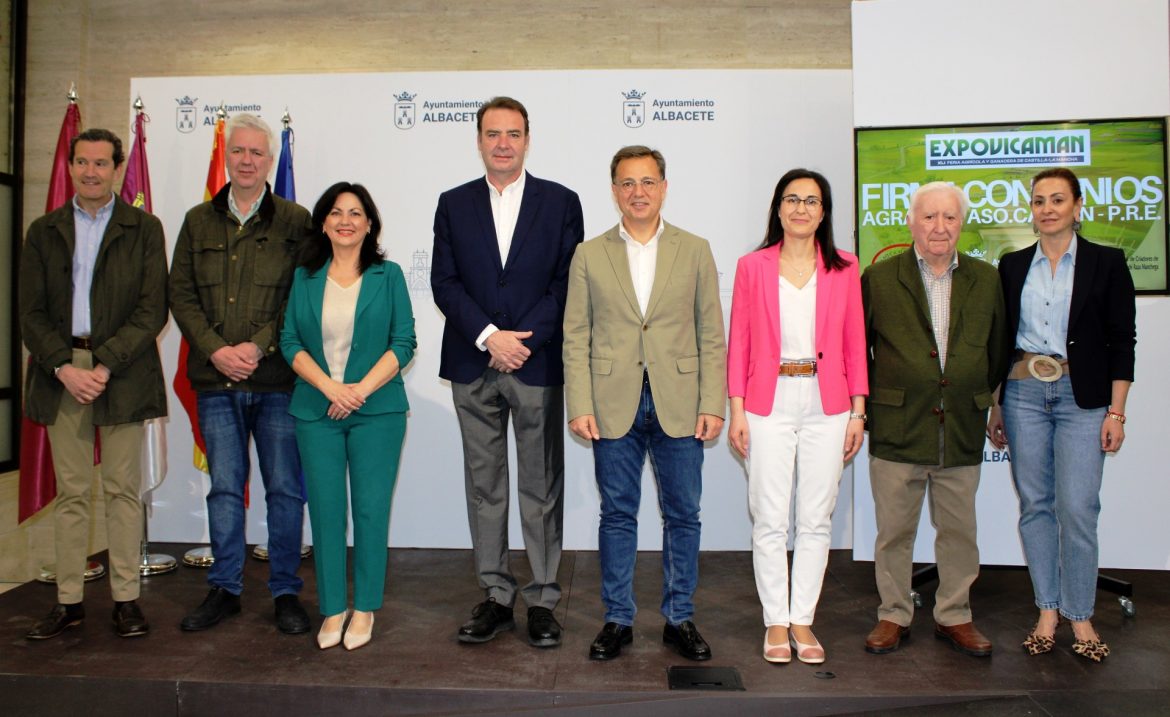 El alcalde de Albacete, Manuel Serrano, en representación de la Institución Ferial de Albacete (Ifab) ha suscrito esta mañana sendos convenios de colaboración, por valor total de 25.000 euros, para engrandecer y hacer más atractiva la celebración de la LXI edición de la Feria Agrícola y Ganadera de Castilla-La Mancha, Expovicaman, que, del 7 al 11 de mayo, se desarrollará en el Recinto Ferial, convencido de que “será un éxito de público y organización”