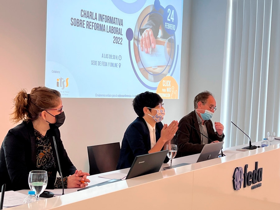 Doscientas personas, unas de manera presencial y otras online, en representación de otras tantas empresas, han participado en la jornada sobre la Reforma Laboral que FEDA ha celebrado con las intervenciones de los responsables de su Departamento Jurídico y la jefa de la Inspección de Trabajo, Llanos Martínez Sánchez.