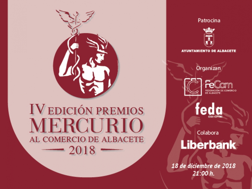 La Federación de Comercio celebrará mañana el acto de entrega de los Premios Mercurio al Comercio de Albacete, en su cuarta edición. Tendrá lugar en la sede de FEDA, a las 21,00 horas. Unos Premios que forman parte de las diversas actuaciones de dinamización de comercio de Albacete, con la colaboración del Ayuntamiento de Albacete, junto con las diferentes asociaciones representativas del sector del comercio. El acto, además, cuenta con el patrocinio de Liberbank.