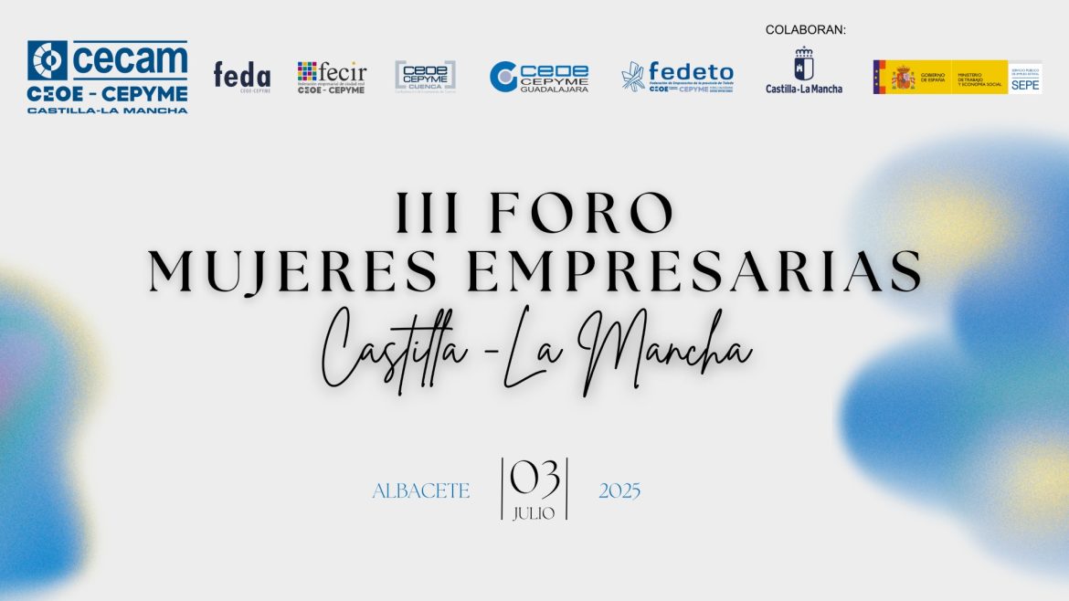 Con el objetivo principal de impulsar la figura de las mujeres empresarias de nuestra región y visibilizar la labor de las organizaciones empresariales a favor de las empresas en materia de igualdad, CECAM CEOE-CEPYME Castilla-La Mancha, en colaboración con sus organizaciones empresariales provinciales, celebrará por tercer año consecutivo el III Foro Mujeres Empresarias de Castilla-La Mancha, que tendrá lugar el próximo jueves 3 de julio, en la sede de FEDA, en Albacete.