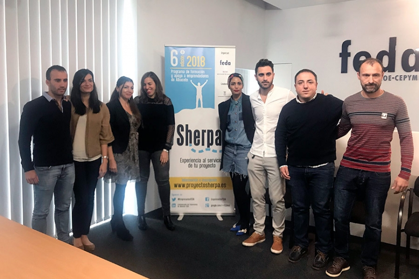 FEDA ha reunido hoy a los ochos emprendedores finalistas de la VI Edición del Programa Sherpa, que de forma ininterrumpida viene desarrollando desde 2012, con la colaboración de la Diputación Provincial, y al que en los últimas ediciones se han incorporado el Ayuntamiento de Albacete y BBVA.
