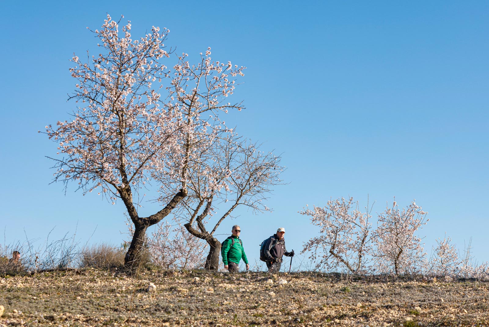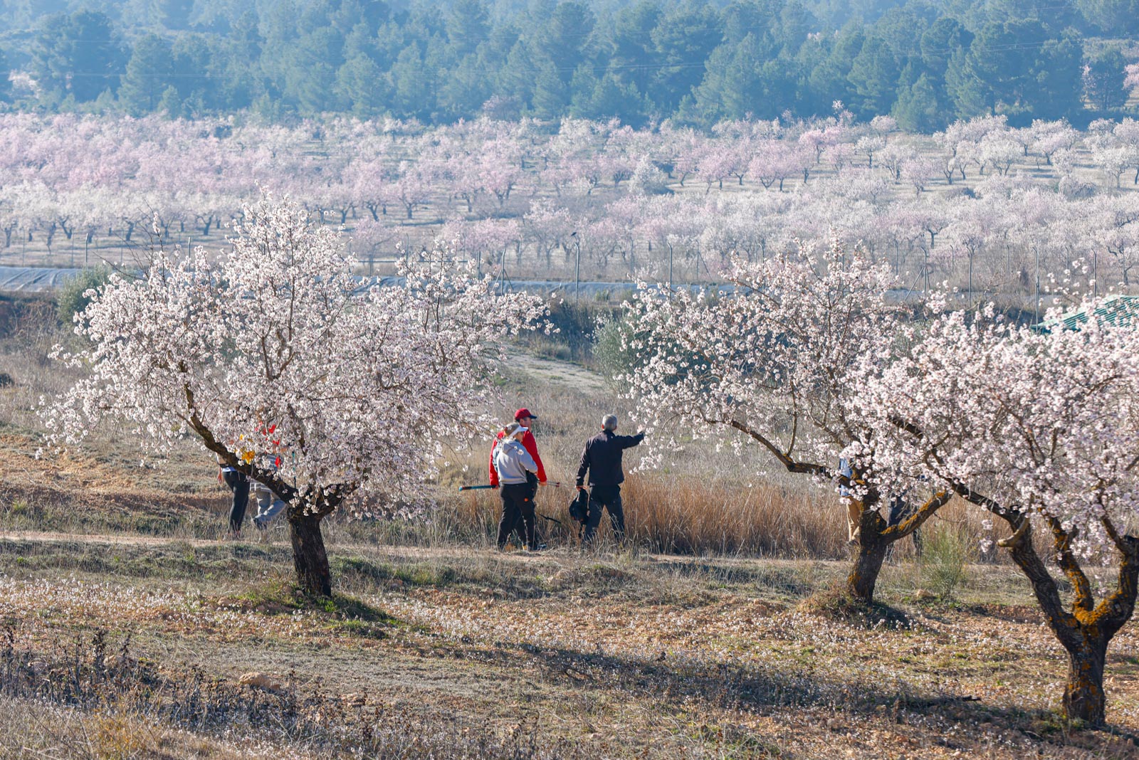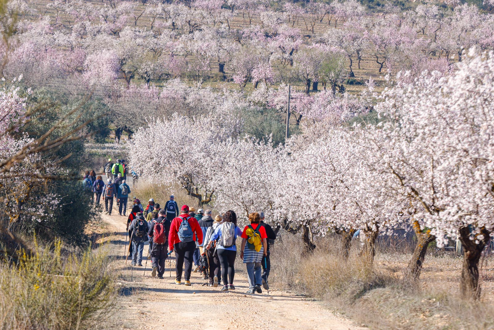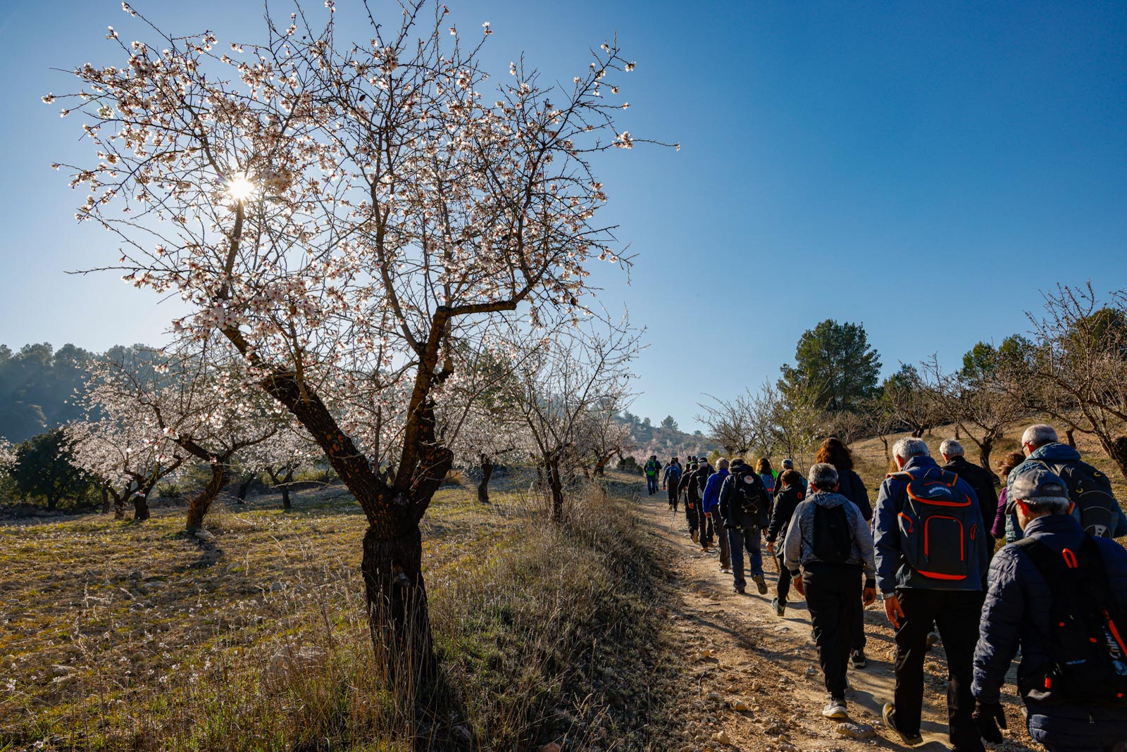 Entre distintos cultivos, principalmente almendros -de gran belleza ya en flor-, junto a algún olivo, continuarían la marcha ya de regreso al municipio. Así, y tras cruzar la carretera de Elche de la Sierra, subirían por la Quebrada, hasta llegar a la Cantarería.