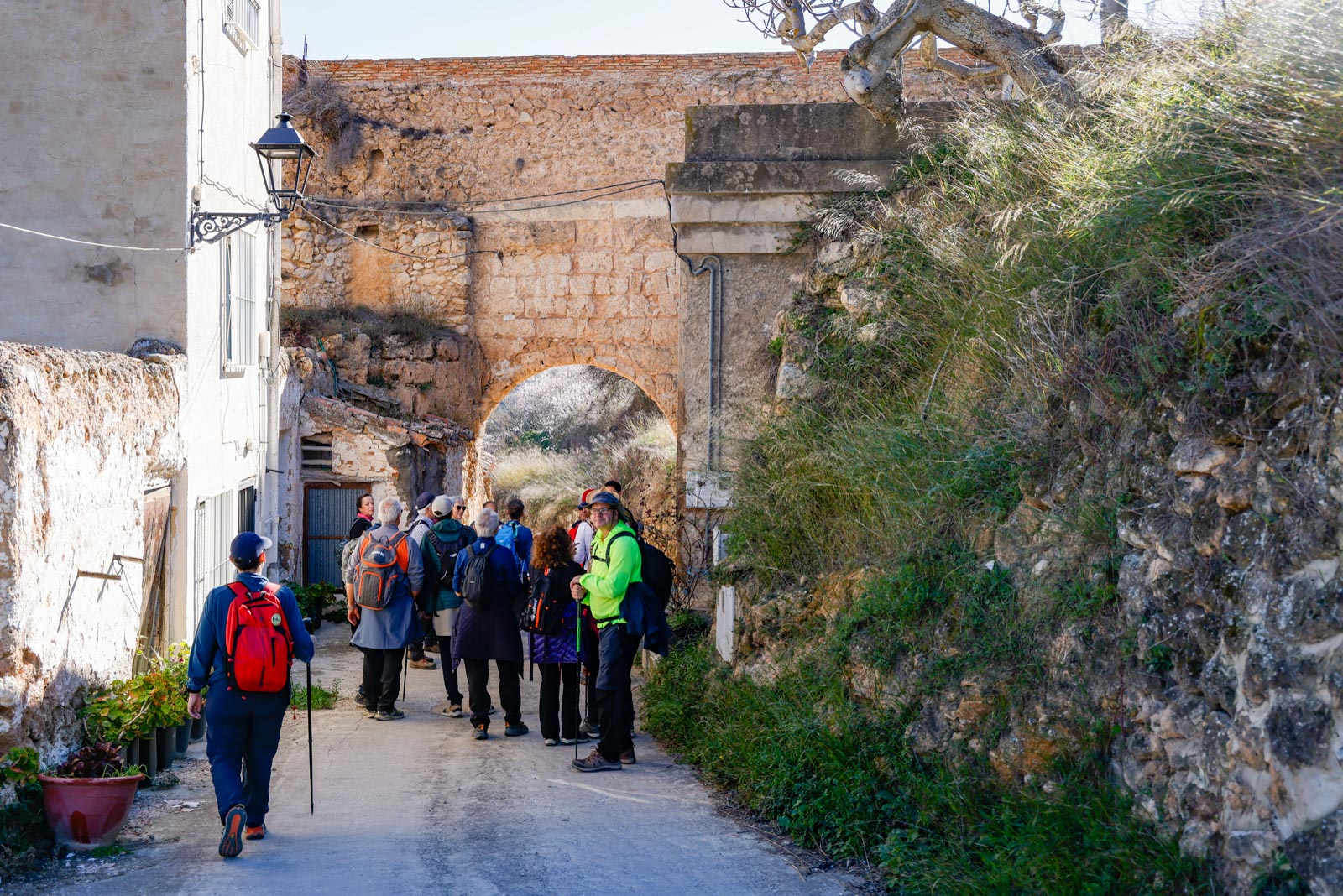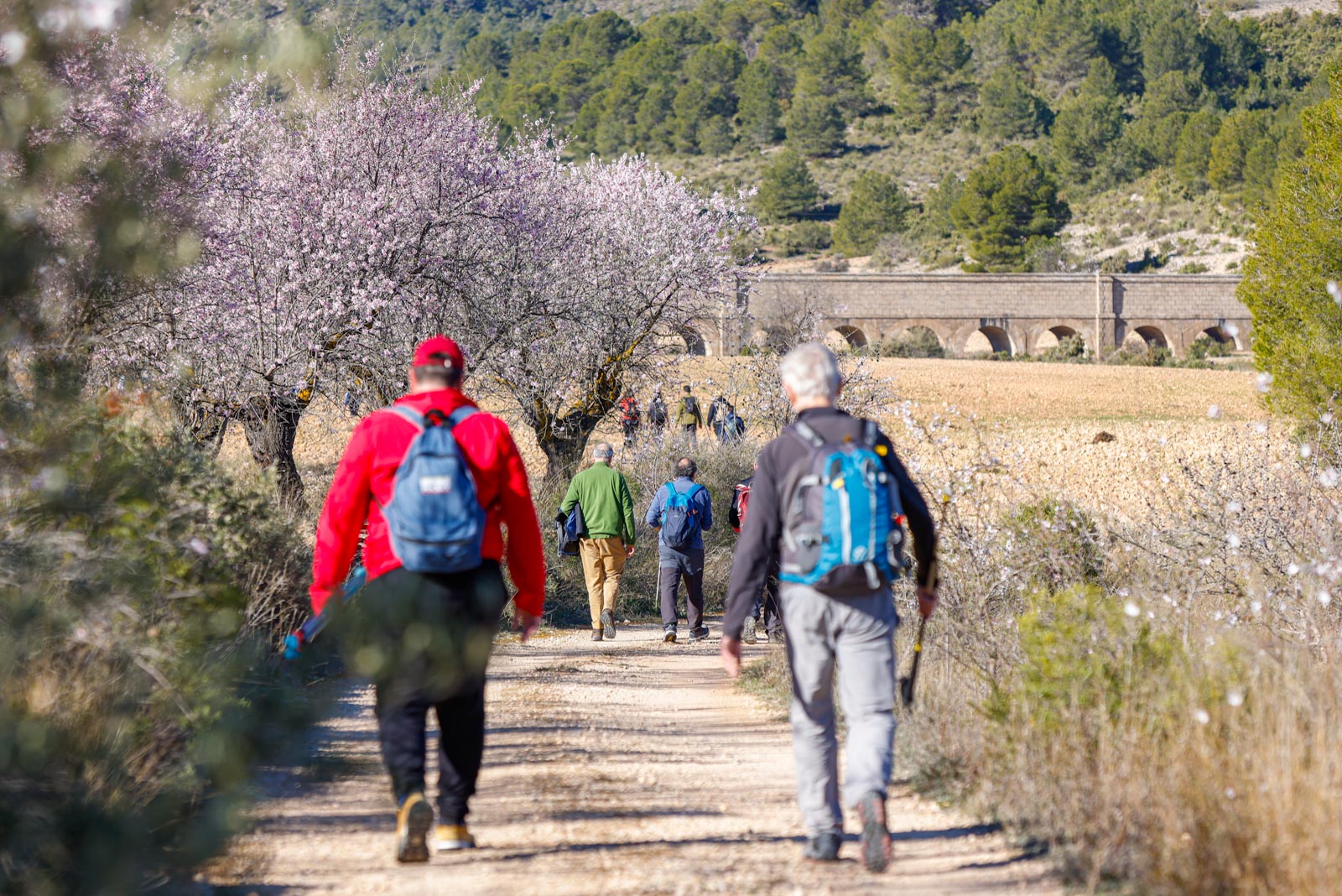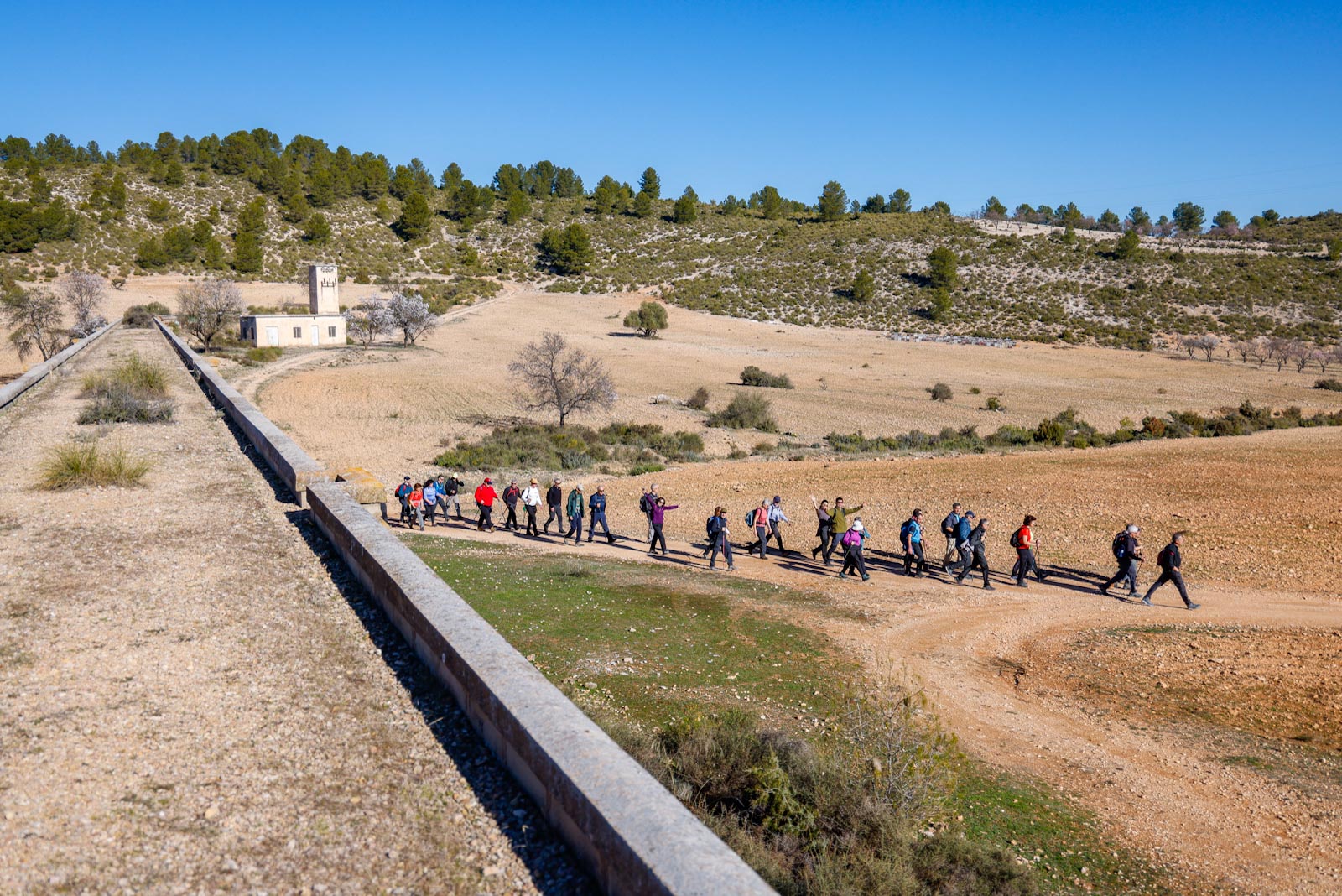 En un día soleado, y tras cruzar la carretera, cogerían el ‘atajadero’ (antiguo cortijo habitable del municipio), en dirección al depósito del agua y muy cerca del acueducto romano. Ya con fantásticas vistas del pueblo y rodeados de almendros ya floridos, aunque tocaba afrontar una exigente subida, hasta llegar al depósito. Cruzarían el camino del depósito de los canales del Taibilla (que abastece al municipio en ocasiones extraordinaria), llegando hasta el acueducto de dichos canales, (obra hidráulica que conduce el agua desde Nerpio a Cartagena).