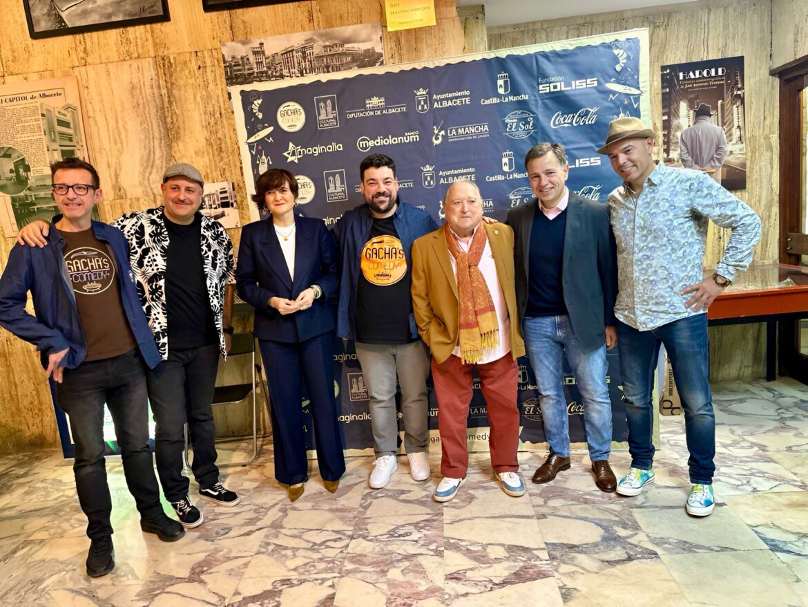 Fernando Esteso ha recibido la ‘Mención Sancho Panza’ 2024 de mano de la concejala de Cultura, Elena Serrallé, y de los directores del festival Gacha’s Comedy, Jesús Arenas y Carlos Martínez, durante el acto celebrado en la Filmoteca Municipal.