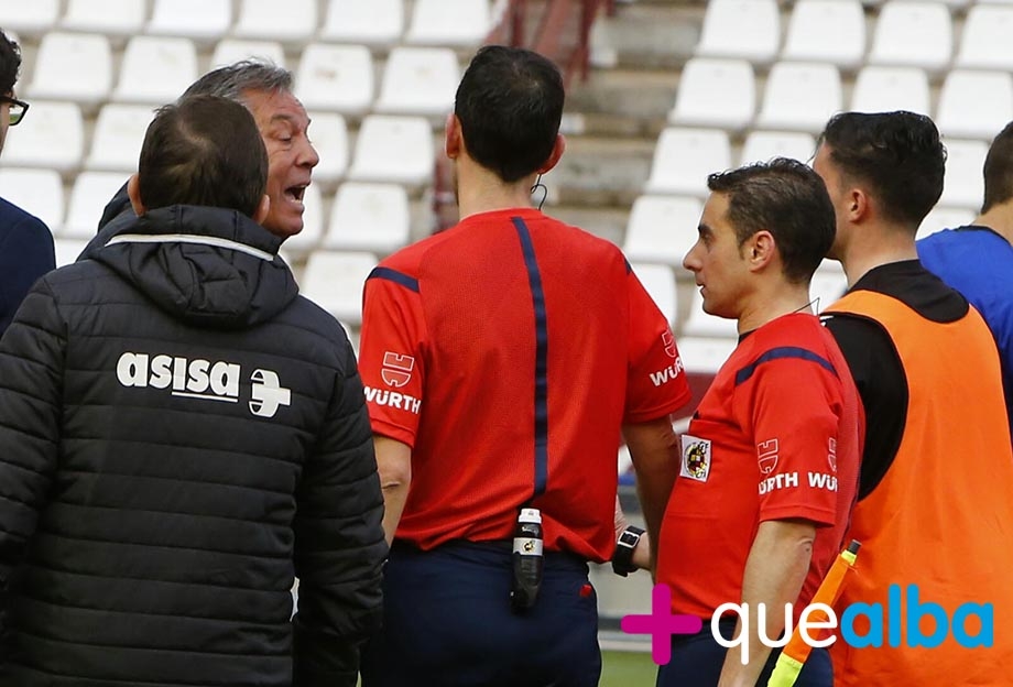 El míster del Alba se fue a ‘conversar’ con el árbitro al terminar el partido, para lamentar que se había cargado el encuentro con sus decisiones. En sala de prensa, indicó que le había indicado que «la primera jugada era dudosa» y que «sin comentarios» respecto al arbitraje en contra. El míster estaba satisfecho del trabajo de sus jugadores y lamentaba no tener «un pelín más de suerte».