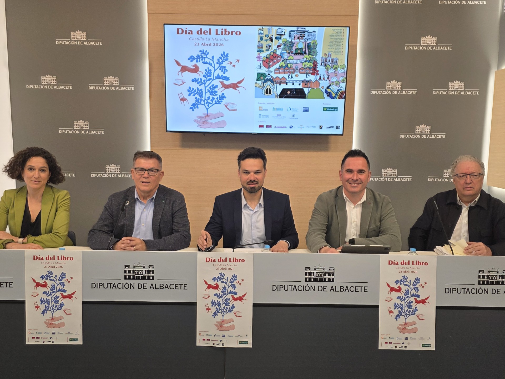La Diputación de Albacete ha acogido la presentación con el diputado de Cultura, Miguel Zamora como anfitrión de una rueda de prensa en la que también han participado el delegado provincial de Educación, Cultura y Deportes de la JCCM, Diego Pérez; el concejal de Educación en el Ayuntamiento de la capital, Pascual Molina; el presidente de la Asociación de Librerías de Albacete, José Herreros; y Lucía Mallol, responsable de Comunicación y Patrocinios de Globalcaja.