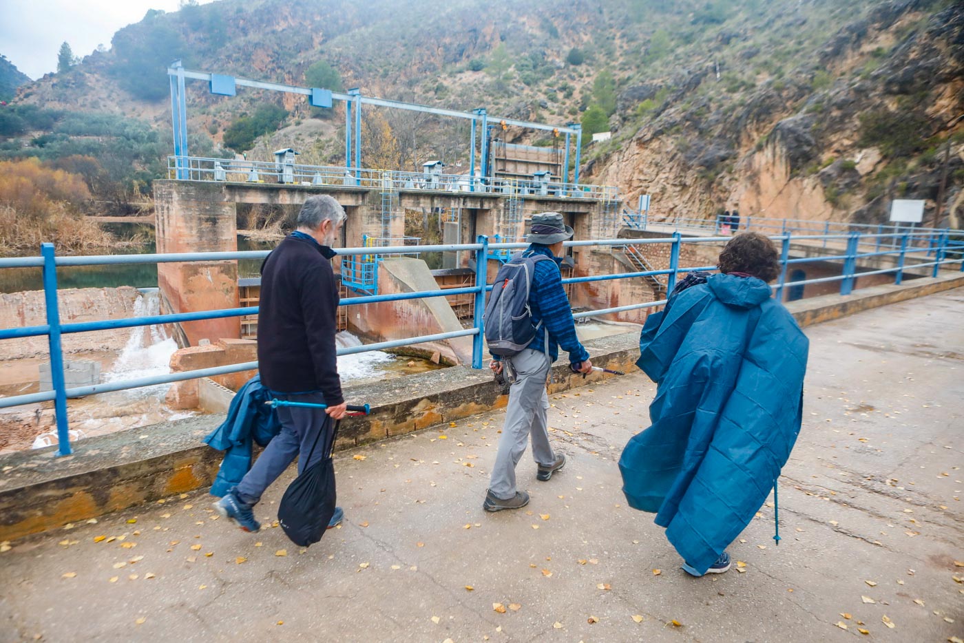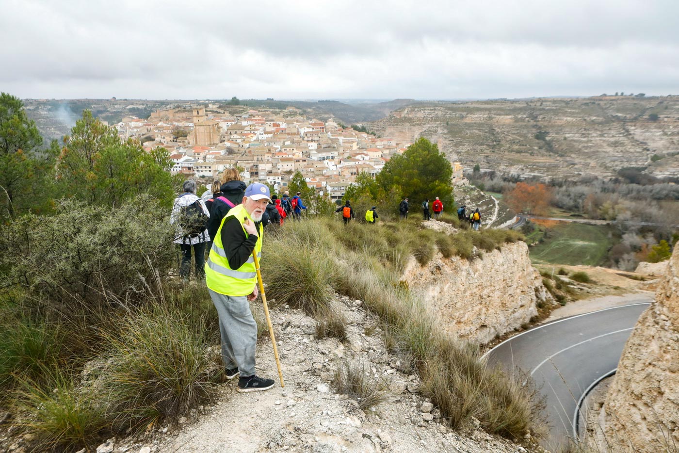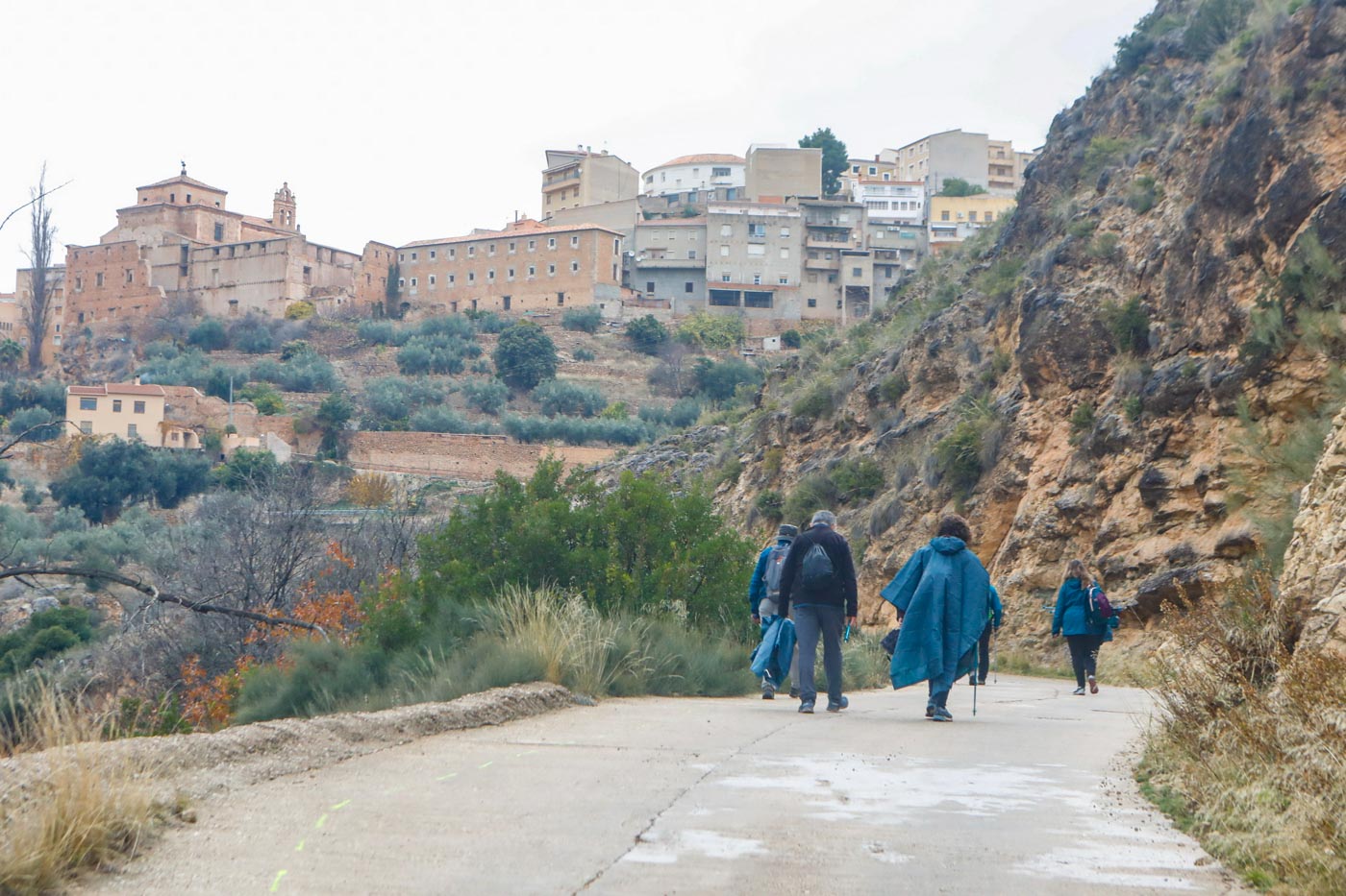 Con el cielo cubierto, sobre las nueve de la mañana, desde la puerta del Ayuntamiento, que se sitúa frente a la iglesia, arrancaría la marcha, descendiendo por las peculiares calles de Jorquera hasta llegar al cauce del río Júcar. Cruzarían este por el puente, para girar a la derecha y caminar por la orilla a pie de roca, hasta comenzar a ascender por la antigua calzada romana, para adentrase en un bosque de pinos hasta llegar al primero de los miradores, con la maravillosa vista del pueblo al frente y todo el valle que forma el Júcar a su paso.