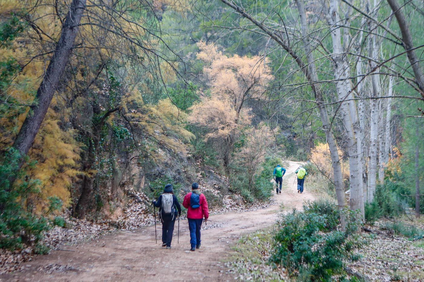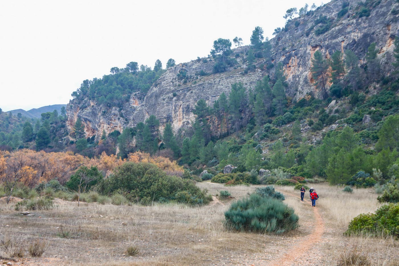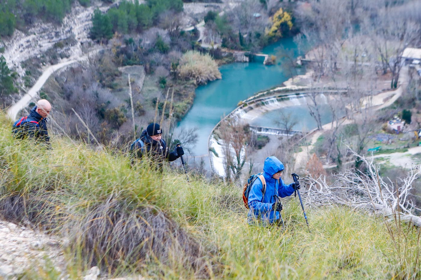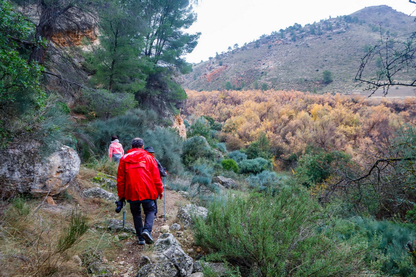 Con el cielo cubierto, sobre las nueve de la mañana, desde la puerta del Ayuntamiento, que se sitúa frente a la iglesia, arrancaría la marcha, descendiendo por las peculiares calles de Jorquera hasta llegar al cauce del río Júcar. Cruzarían este por el puente, para girar a la derecha y caminar por la orilla a pie de roca, hasta comenzar a ascender por la antigua calzada romana, para adentrase en un bosque de pinos hasta llegar al primero de los miradores, con la maravillosa vista del pueblo al frente y todo el valle que forma el Júcar a su paso.
