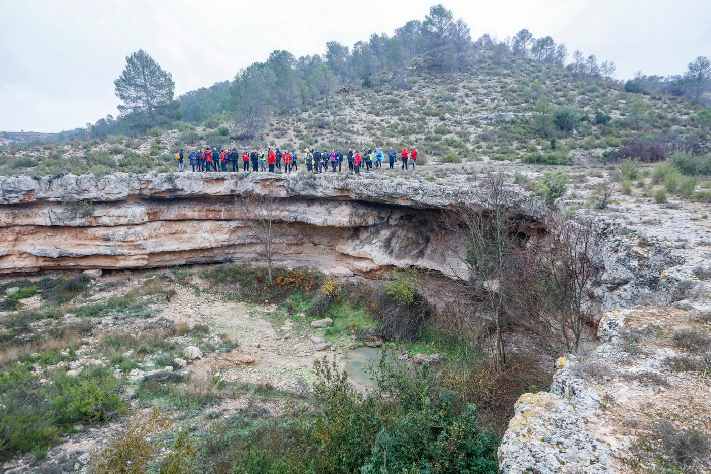 Ascenderían un poco más, hasta llegar a la llanura y la parte más elevada del recorrido, cruzarían entonces la carretera, para recuperar sobre un par de kilómetros y enlazar una serie de barrancos, pasando también por algunos tollos hasta llegar al mítico mirador de Jorquera, con excepcionales vistas del pueblo y toda la hoz del Júcar, donde también aquí, el ayuntamiento, les tenía preparado un tentempié.
