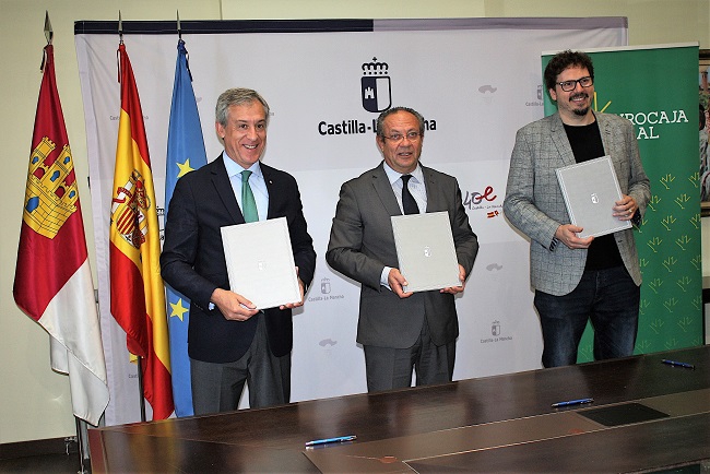 El acuerdo fue rubricado por el presidente de la Fundación Eurocaja Rural, Javier López Martín, el consejero de Hacienda y Administraciones Públicas de la JCCM, Juan Alfonso Ruiz Molina, y el presidente de la Fundación CIEES y del Grupo CECAP, Andrés Martínez Medina, en la sede de la Consejería.