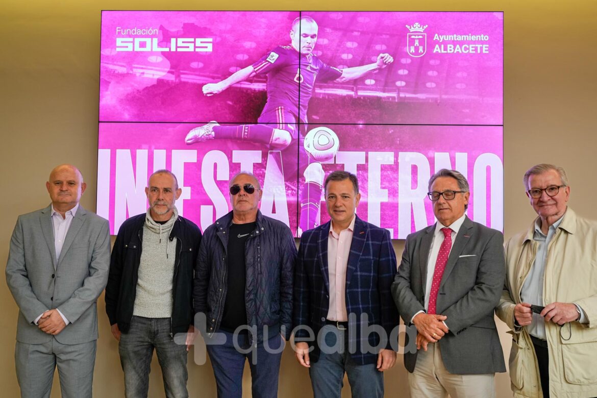 El Salón de Plenos del Ayuntamiento de Albacete ha acogido esta mañana la presentación del acto por el que se colocará en las inmediaciones del Carlos Belmonte la estatua del futbolista Andrés Iniesta, natural de Fuentealbilla y que anotó para España el gol que dio al país el único Mundial que por ahora tenemos.