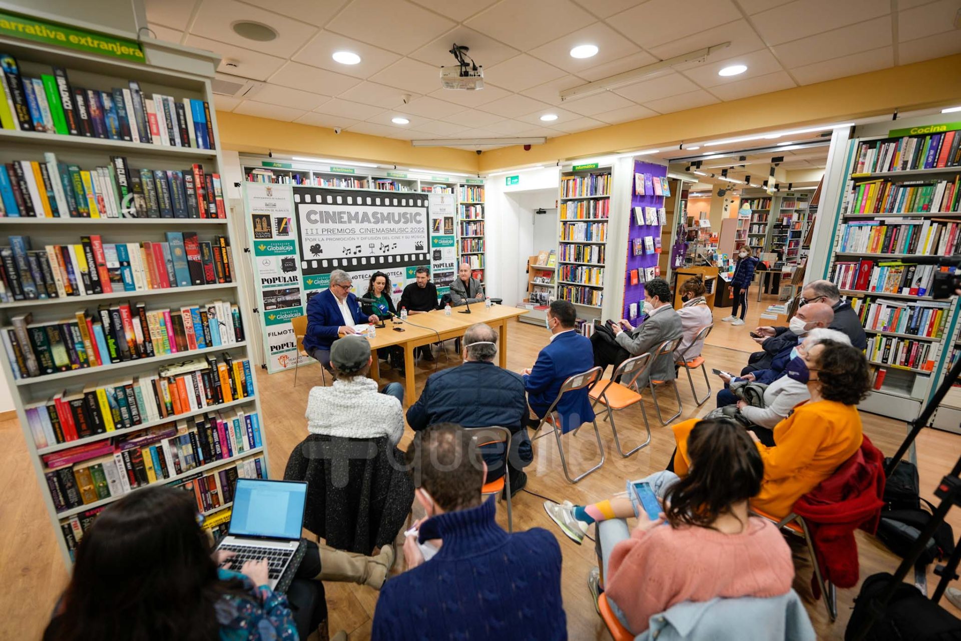 La III Edición de los Premios Cinemasmusic por la promoción y difusión del Cine y su Música 2022 ha seguido con su programa este sábado. Como antesala a la entrega de los premios que tendrá lugar esta noche, en el Teatro Circo de Albacete, se ha celebrado una rueda de prensa, en la Librería Popular, a la que han asistido el director del Festival, Juan Ramón López.