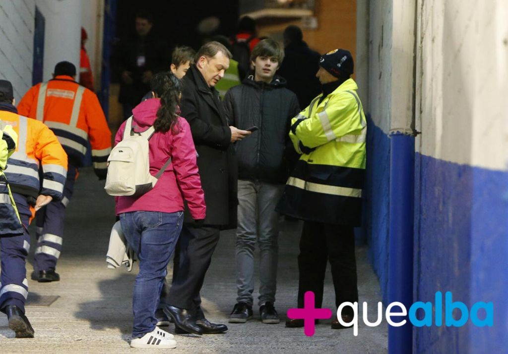 El presidente del Albacete Balompié, José Miguel Garrido, que ha visto el partido en La Romareda, ha bajado a los vestuarios nada más terminar el partido y está conversando con el técnico del Alba, Luis César.
