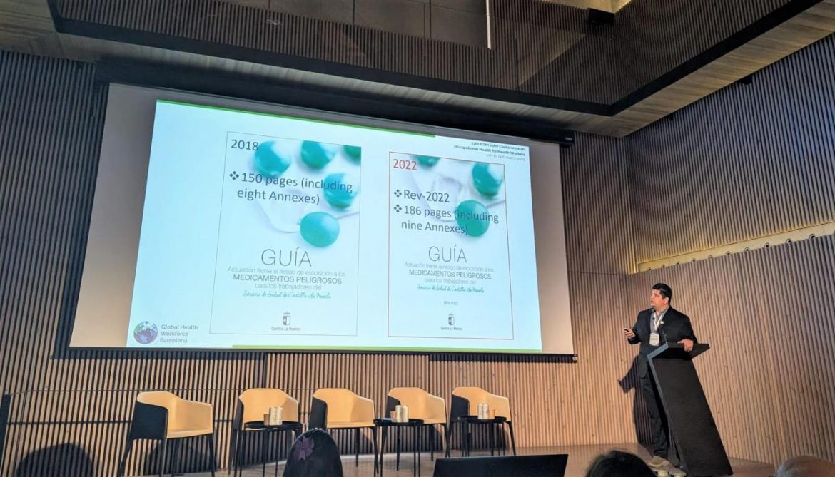 Prueba de ello es la reciente participación en la Global Health Workforce Week, celebrada en Barcelona, donde el Coordinador Regional del Servicio de Prevención de Riesgos Laborales, Dagoberto Andrés Bejarano Ugalde, ha expuesto los aspectos más relevantes de la implementación de la ‘Guía de Actuación frente al Riesgo de Exposición a los Medicamentos Peligrosos para los Trabajadores del SESCAM’.