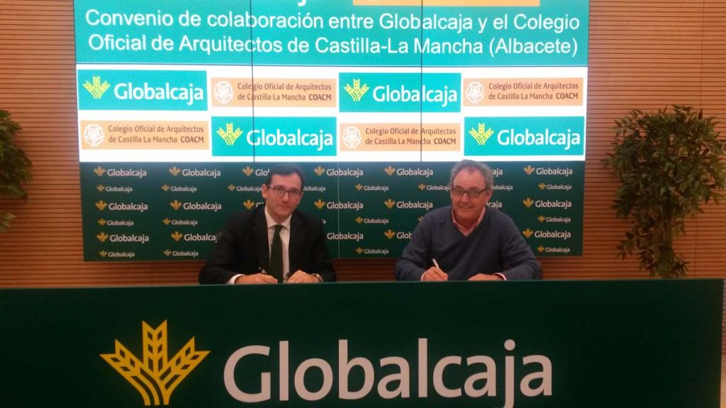 El director territorial de Globalcaja en la provincia de Albacete, Javier González, y el presidente del Colegio Oficial de Arquitectos de Castilla-La Mancha (Demarcación de Albacete), Pedro Angel Torres, han firmado un convenio de colaboración, por el que la entidad ofrece a esta institución y su colegiados, una amplia y específica oferta de productos, servicios y asesoramientos, con el objeto de facilitar su labor diaria. Tanto el director territorial como el presidente del Colegio han mostrado su satisfacción por este acuerdo, que significa incrementar las relaciones existentes y sentar nuevas bases para la realización de acciones conjuntas, en favor de este colectivo. En las imágenes, un momento de la firma celebrada en la sede de Globalcaja en Albacete.
