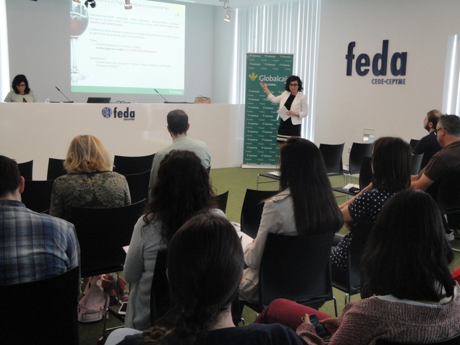 La  responsable de Comercio Internacional de Globalcaja, María José Olmeda, ha hablado sobre Financiación Internacional y sobre el trabajo de apoyo que lleva a cabo la entidad, en apoyo del comercio exterior, en el taller del ciclo de internacionalización e innovación organizado por FEDA. Este ciclo de talleres, que cuentan con grandes expertos en la materia, están organizados desde el Área Internacional de FEDA, como parte de la Enterprise Europe Netword, con la coordinación de ADIEX, y, además, cuenta con el patrocinio de Globalcaja.