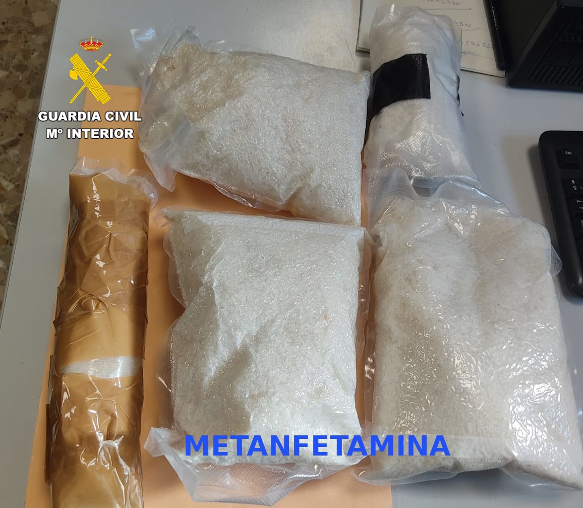 Tras la apertura de estos envoltorios, y una vez analizado su contenido con un narcotest, la sustancia resultó ser metanfetamina, arrojando un peso de 3.470 gramos, con los que podrían haberse elaborado más de 34.000 dosis en el mercado ilícito.