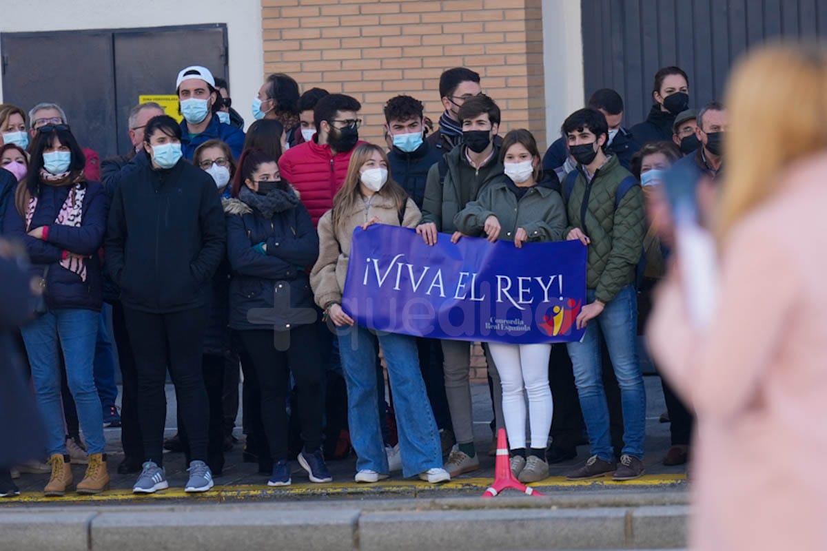 A su llegada, el Rey se ha detenido unos minutos a saludar a las autoridades que le esperaban, tiempo en el que los cientos de vecinos que le esperaban en las inmediaciones de la Ciudad de la Justicia le han enviado gritos de apoyo a su labor.