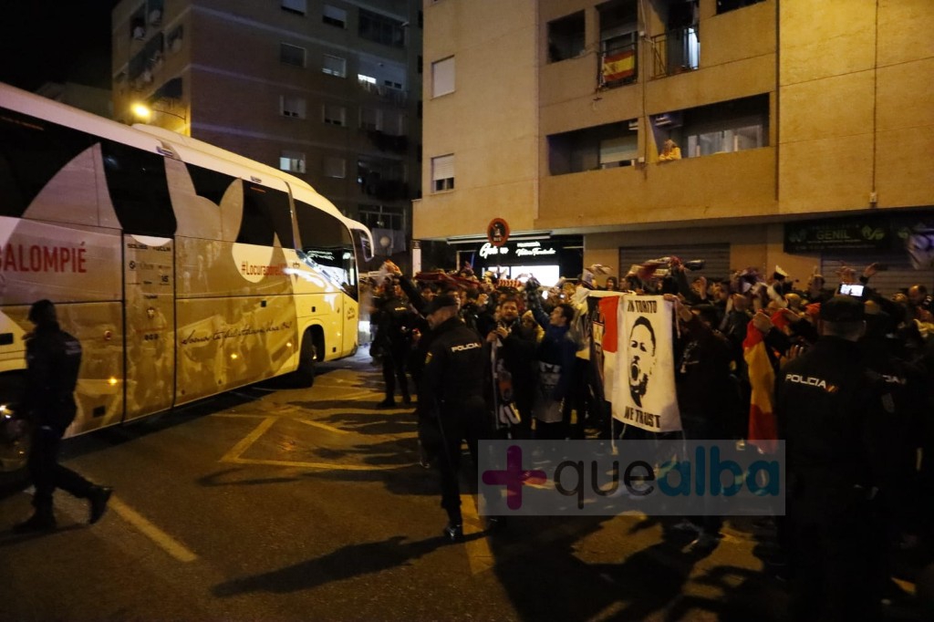 El Albacete Balompié ya está en Los Cármenes y cientos de aficionados lo han recibido a lo grande.