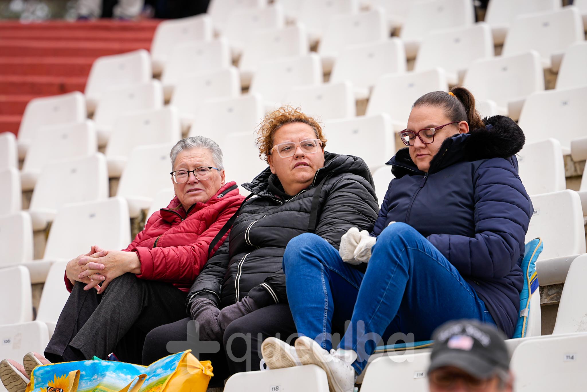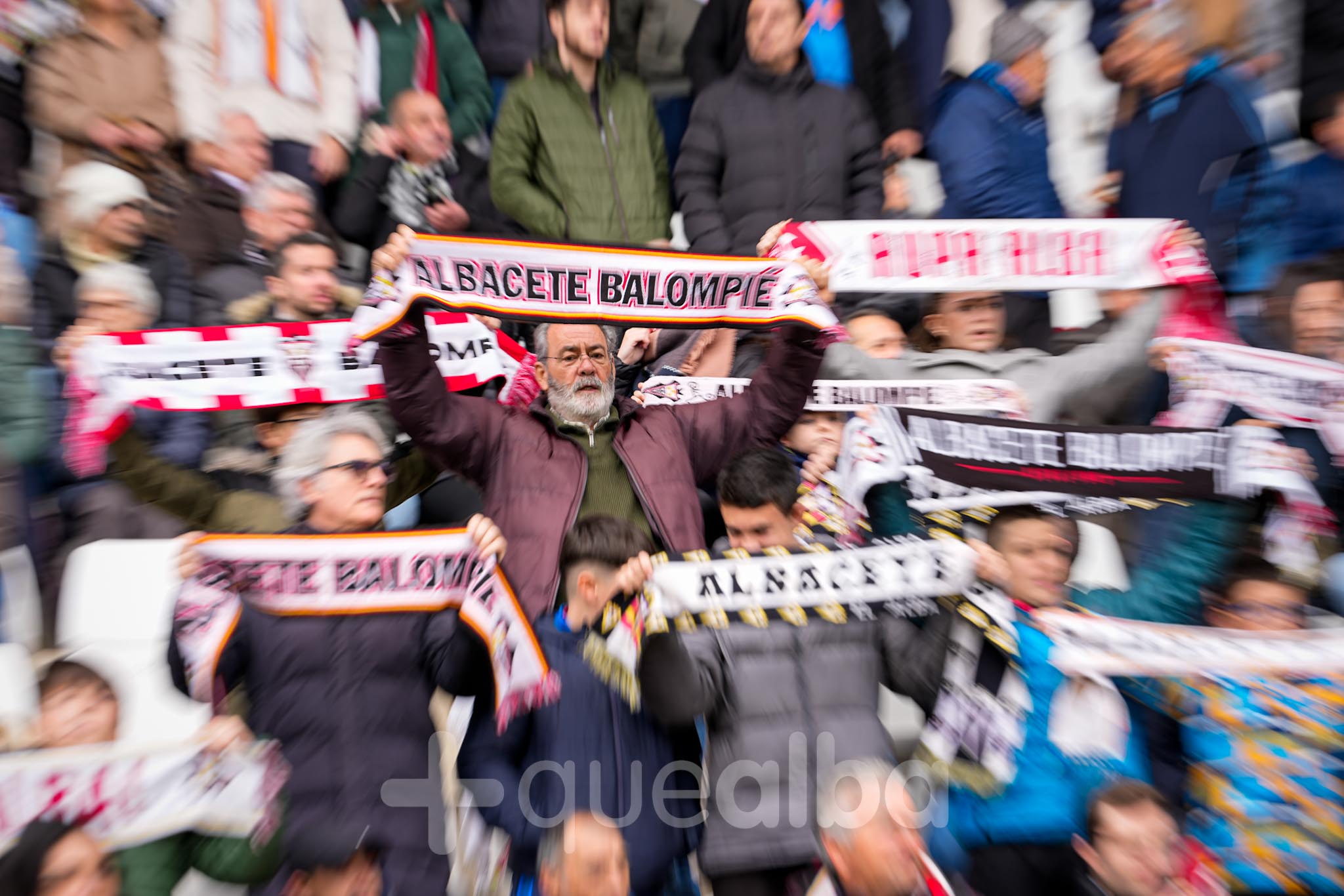 El Albacete Balompié ha recibido este domingo al Málaga, en el Carlos Belmonte, en una tarde de muy mal tiempo que no ha impedido a miles de aficionados acercarse hasta el estadio.