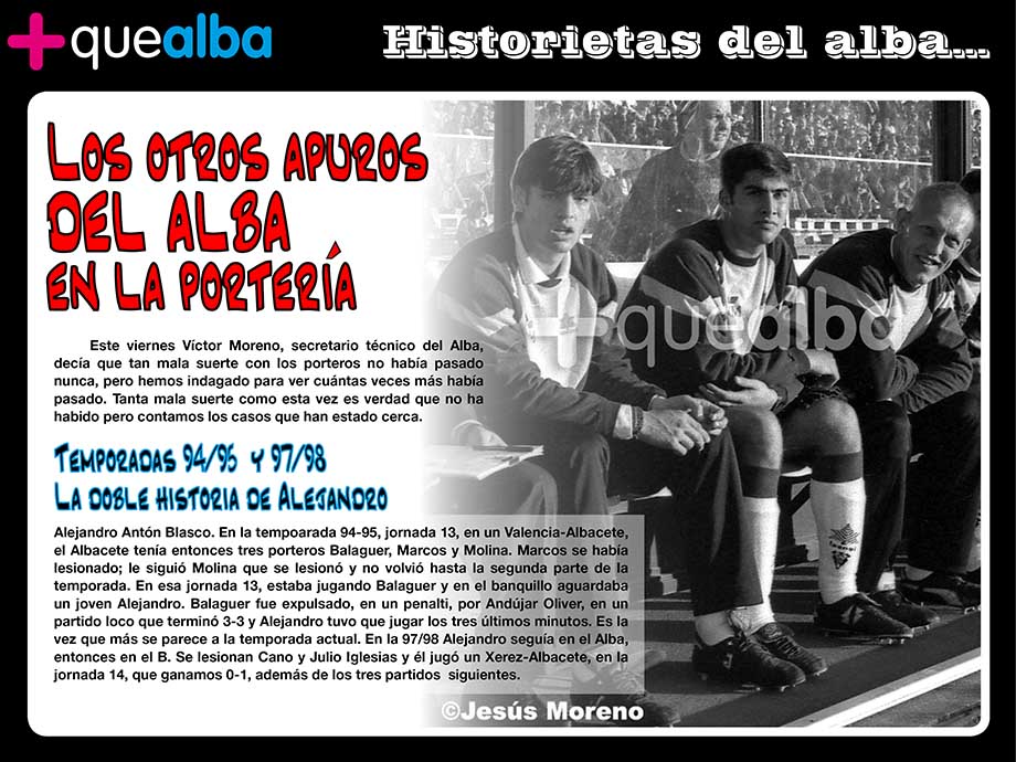 Este viernes Víctor Moreno, secretario técnico del Alba, decía que tan mala suerte con los porteros no había pasado nunca, pero hemos indagado para ver cuántas veces más había pasado. Tanta mala suerte como esta vez es verdad que no ha habido pero contamos los casos que han estado cerca.