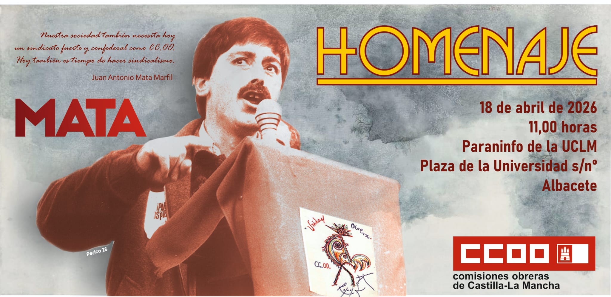 Organizado por CCOO Castilla La Mancha, este sábado tendrá lugar un acto homenaje a Juan Antonio Mata en recuerdo a quien ha sido, y seguirá siendo en la memoria colectiva de varias generaciones, un defensor de la libertad y de los derechos laborales, y pieza fundamental de la construcción de CCOO en la provincia de Albacete y del fortalecimiento del sindicato en la comunidad de Castilla La Mancha.