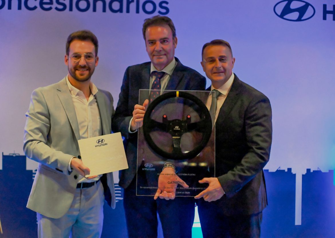 Juan Martínez Moraga, gerente de Martiaga Automoción; Sergio Parra, jefe de ventas Hyundai Martiaga Albacete; y Javier Carreras, gerente de Gasmovil Murcia, acudieron a recoger la distinción.