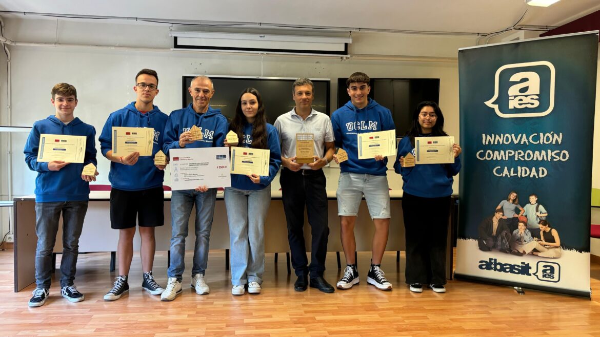 Francisco José Díaz Díaz, Adriana Aisha Moreno Cascales, Andrés Sánchez Esparcia, Natalia Luciana Terrazas y Álvaro Tomás Amat han sido los vencedores a nivel regional en Bachillerato bajo la tutela del profesor del IES Albasit Juan R. García Ballesteros. El docente también ha tutorizado el trabajo del grupo que ha quedado en segunda posición, formado por Alejandro Fernández Alcantud, Pau García Arroyas, Rubén Martínez Segovia, Marcos Sánchez García y Álvaro Tamayo Delgado. Completa la clasificación el IES Alfonso VIII de Cuenca en tercera posición, gracias al buen hacer de Alba Cano Palacios, Alejandro Cava Romero, Irene Prieto Cotillas, Luay El Ouahabi y Nael Boulghait Aziz El, tutorizados por Luis Daniel García Ruiz y Lucía Sánchez Nadal.