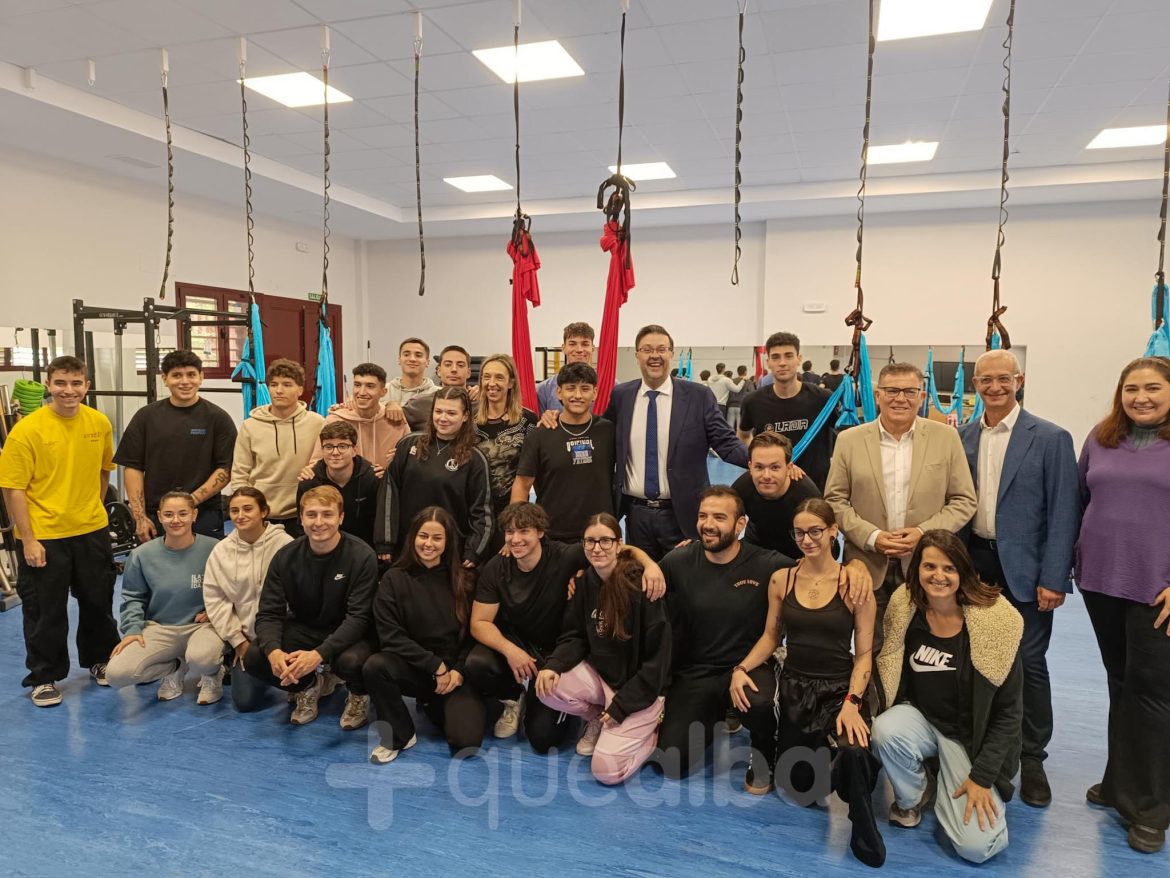 Pastor y Pérez han visitado, además, el taller técnico del ciclo formativo de grado superior de Acondicionamiento Físico, lugar en el que los alumnos le han hecho una pequeña exhibición de acrobacias aéreas.