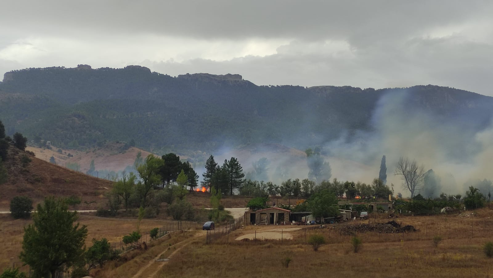 Desde Riópar nos llegan estas imágenes de un foco del incendio forestal que se ha declarado en la localidad, en la zona de las Hoyas, donde las llamas se aprecian cerca de residencias vecinales.