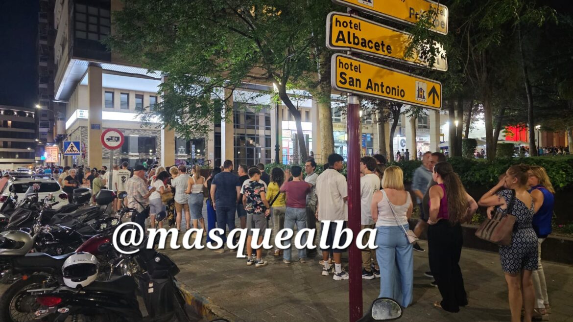 Impresionante este domingo la cola para hacerse con una antorcha para la Noche de San Juan en la ciudad de Albacete. La cola da la vuelta por la calle San Antonio.