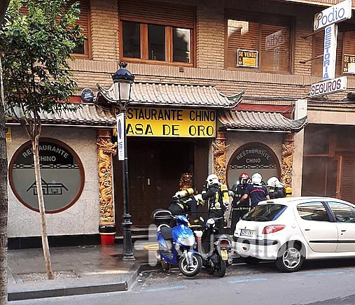 Los Bomberos de Albacete trabajan en el incendio de un restaurante de comida china en la calle Octavio Cuartero. El suceso, sobre el que todavía no han hecho balance de daños, ha creado una gran expectación en una de las calles próximas al centro de la ciudad y en plena Feria. Por ahora, no se conocen las causas.