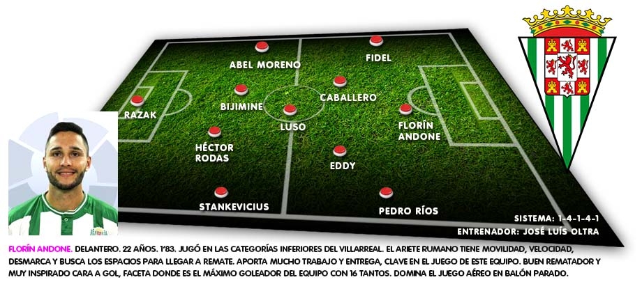 Arriba, Florín Andone con su movilidad, velocidad en desmarques y llegada a remate, es uno de los delanteros más importantes de la categoría. Tambie´n puede actuar como referencia Xisco, jugador más potente y con mejor juego aéreo.