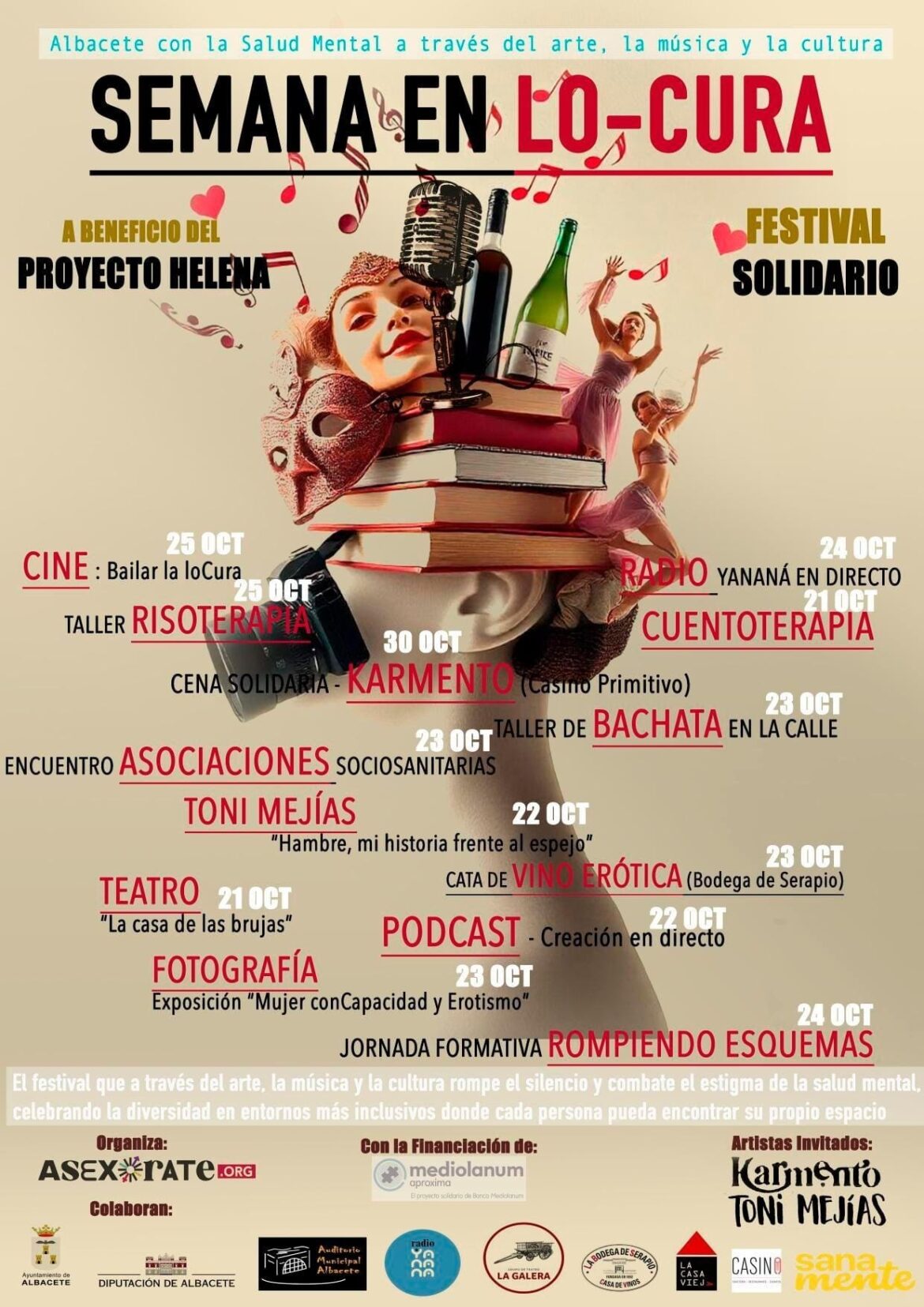 La Asociación Asexórate de Albacete ha organizado un intenso programa para la Semana en Lo-Cura. Actividades culturales para concienciar, en Albacete, de la importancia de cuidar de la Salud Mental.