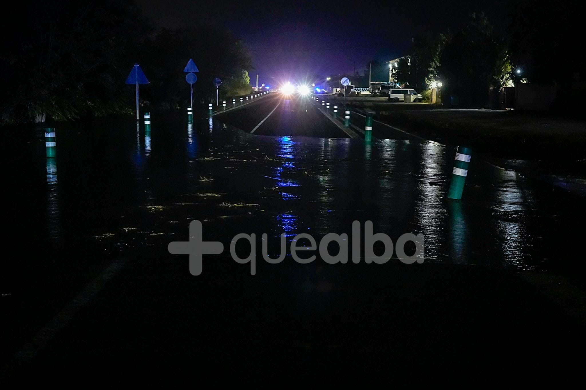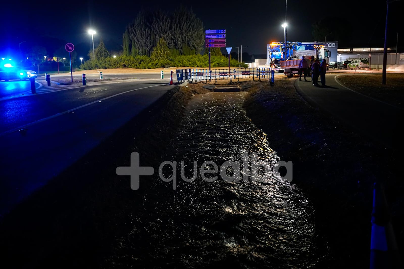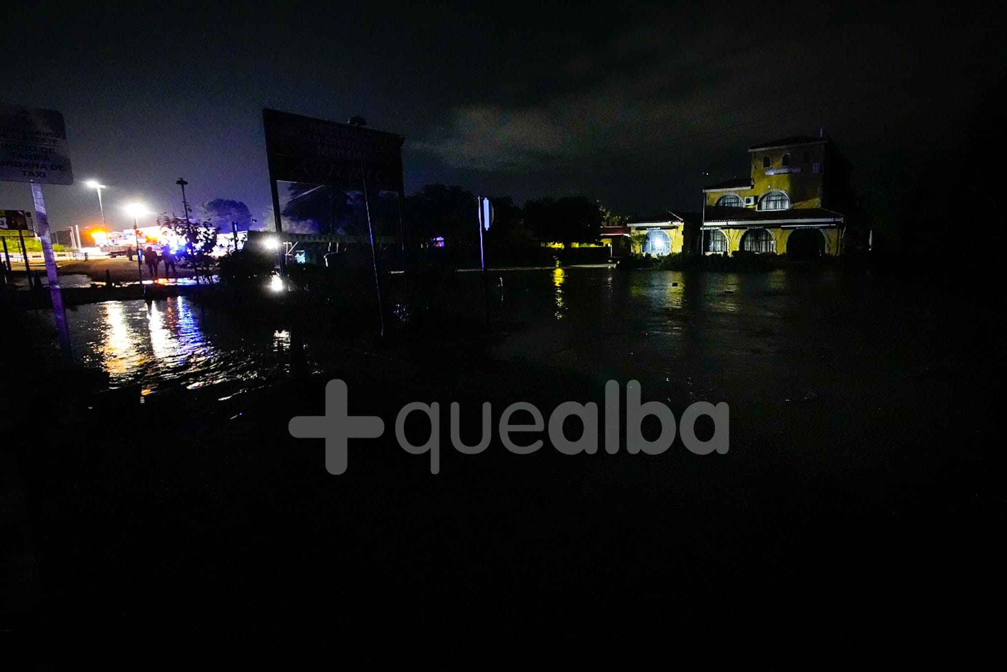 Desde alrededor de las 9 de la noche, bomberos y policía trabajan en la entrada a Albacete por la carretera de Valencia, tras la tromba de agua en Chinchilla de Montearagón, que ha vuelto a provocar inundaciones en este acceso a la ciudad por La Casita.